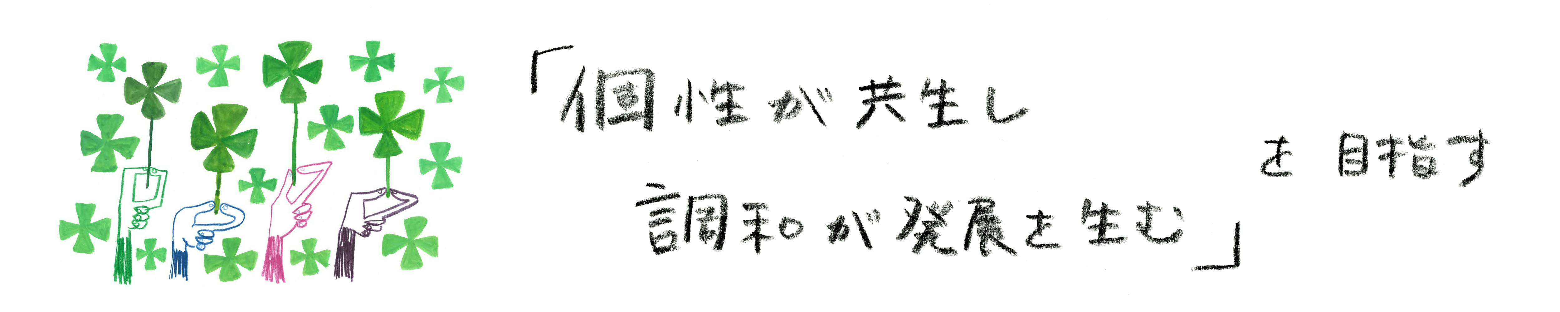 ここで「SUNNYSIDE FIELDS」の運営をしている株式会社サニーサイド(以下、サニーサイド)についても、ぜひ説明させてください。サニーサイドは香川県丸亀市に本社を構え、今年で10周年を迎える会社です。最大の特徴は「個性が共生し調和が発展を生む」という経営理念。全ての取り組みに通底した合言葉にしています。もちろん「SUNNYSIDE FIELDS」でもこの理念をとても大切にしています。まずはこの理念「個性が共生し調和が発展を生む」を掲げる理由について、簡単にお話しさせていただきますね。