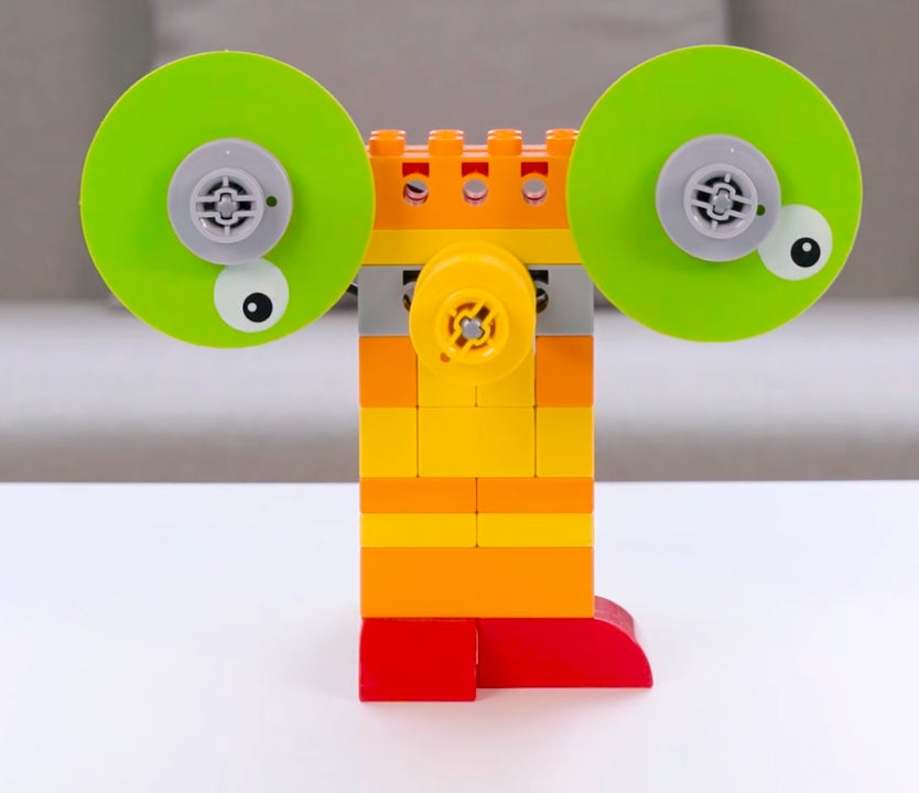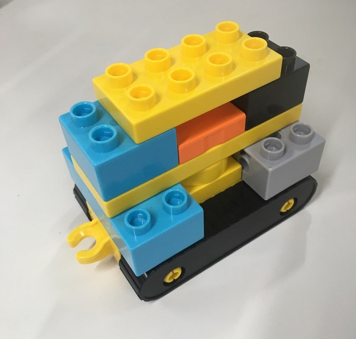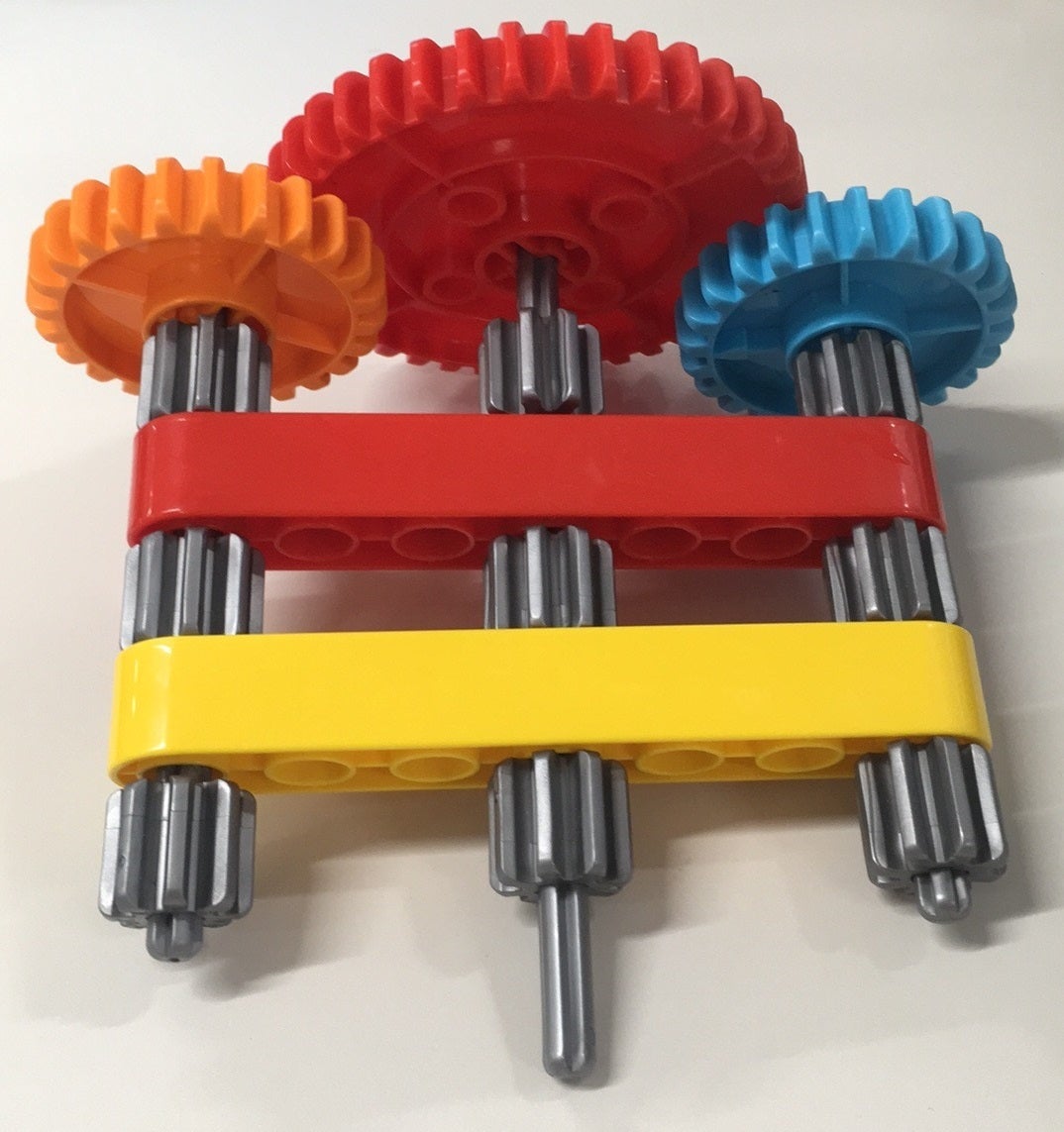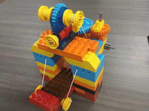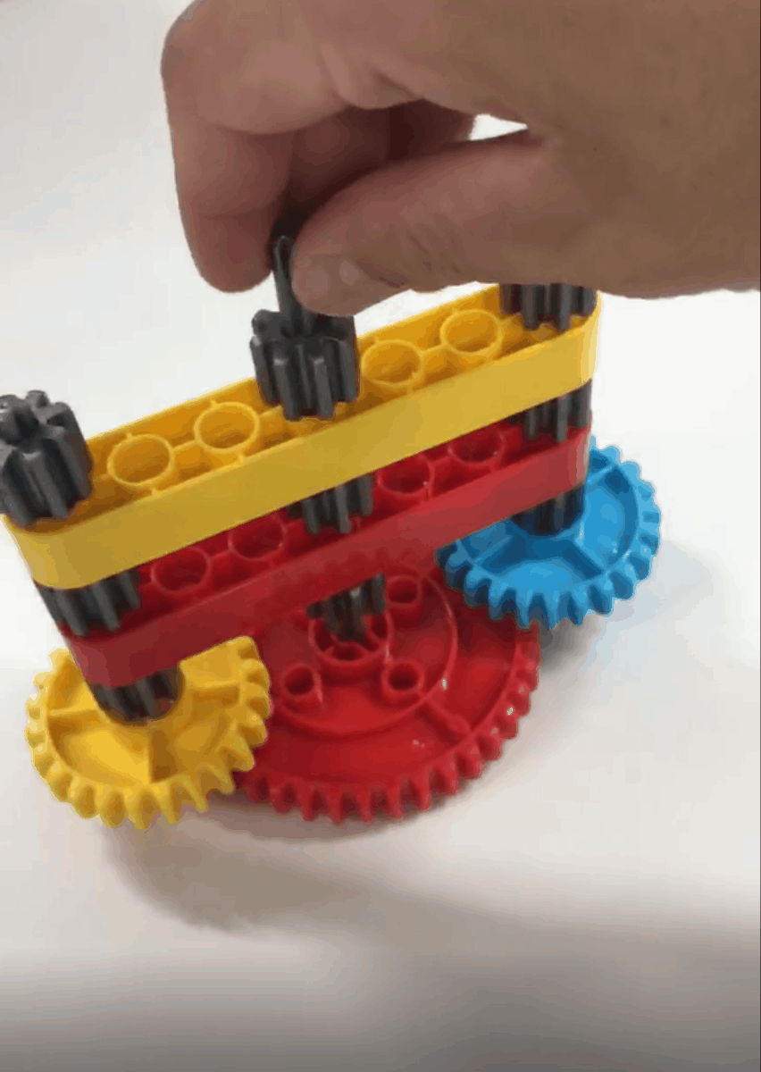 見た目はかわいらしいですが、これはいったいなんなのでしょう?ギヤが3つ使われていますが、かみ合っていないので意味はありません。作成者の7歳児に聞いてみたところ、