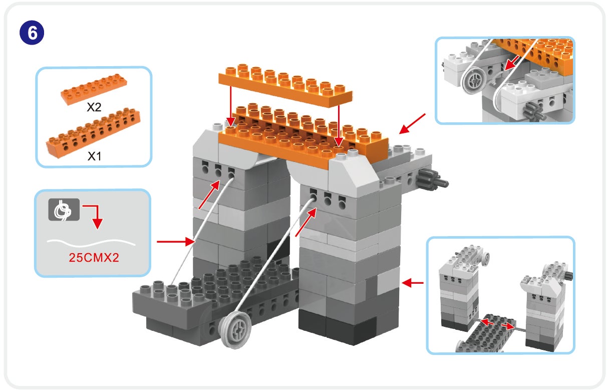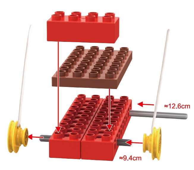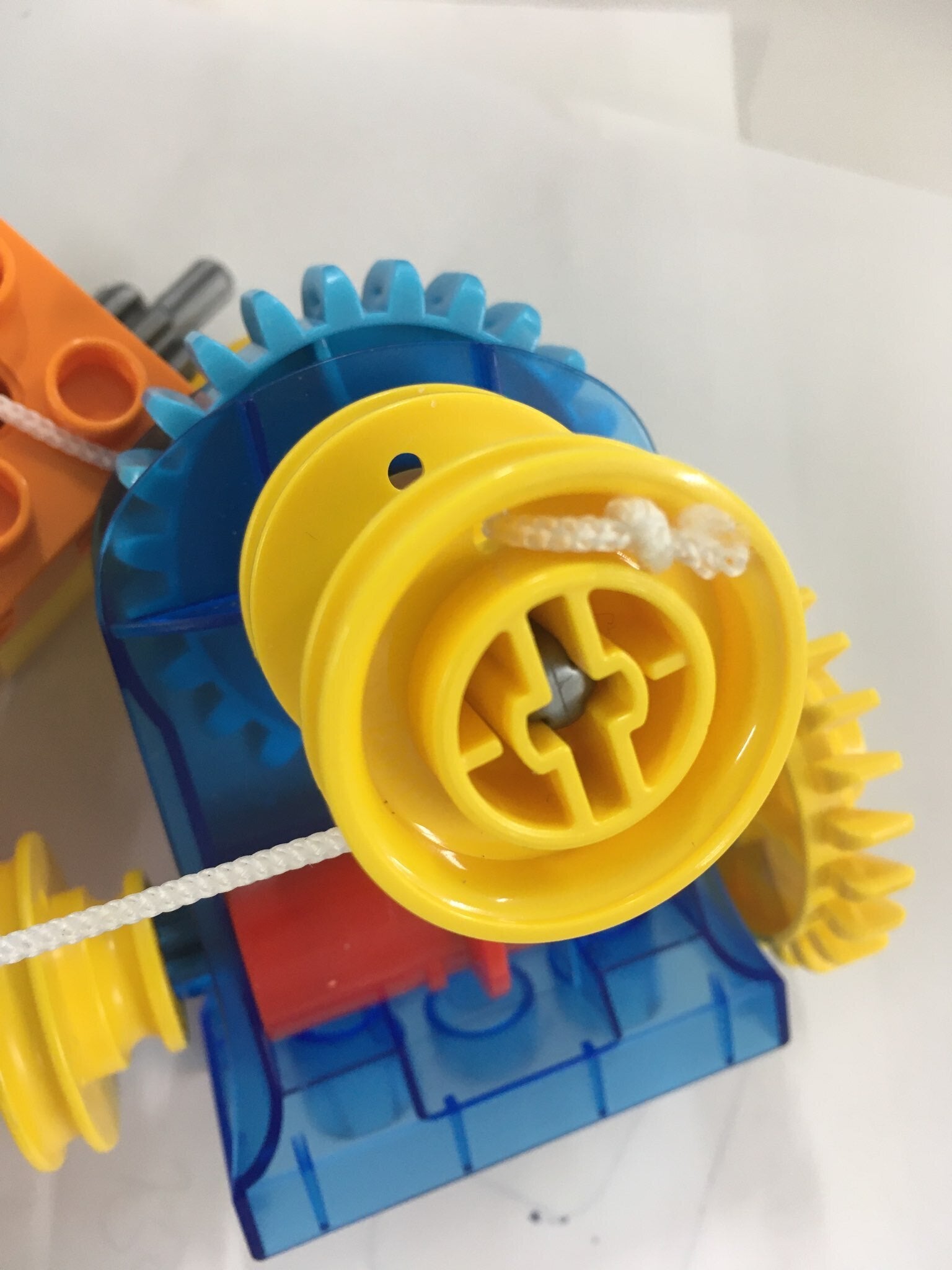 6歳:時間はかかりますが、ほぼ自力で組み立てられました。ひもを結ぶのと、ギアやプーリーへの軸の抜き差しと位置調整は親が手伝いました。