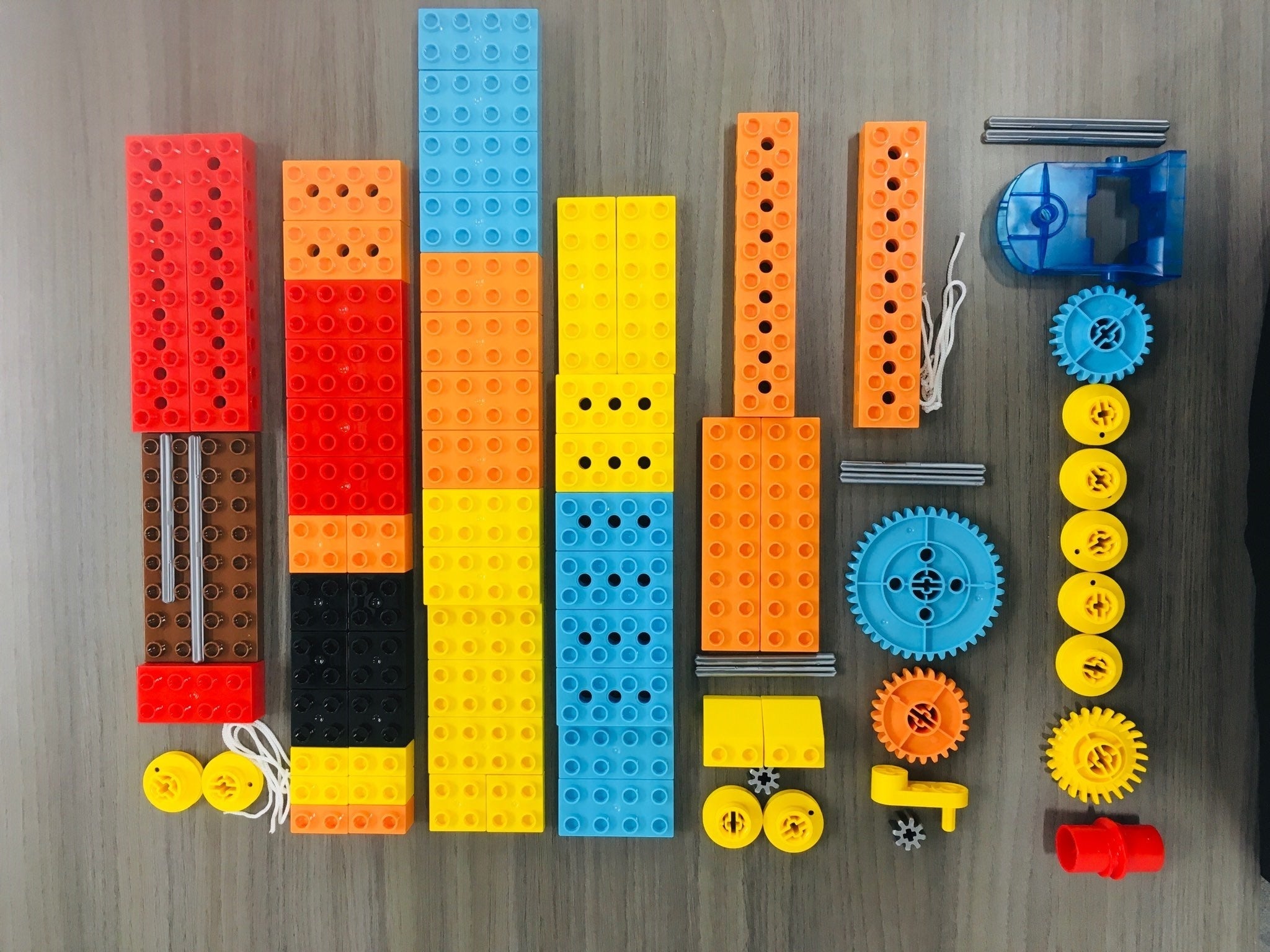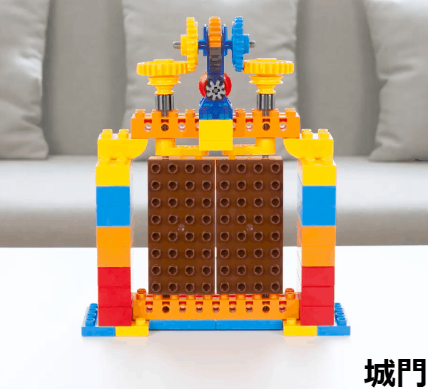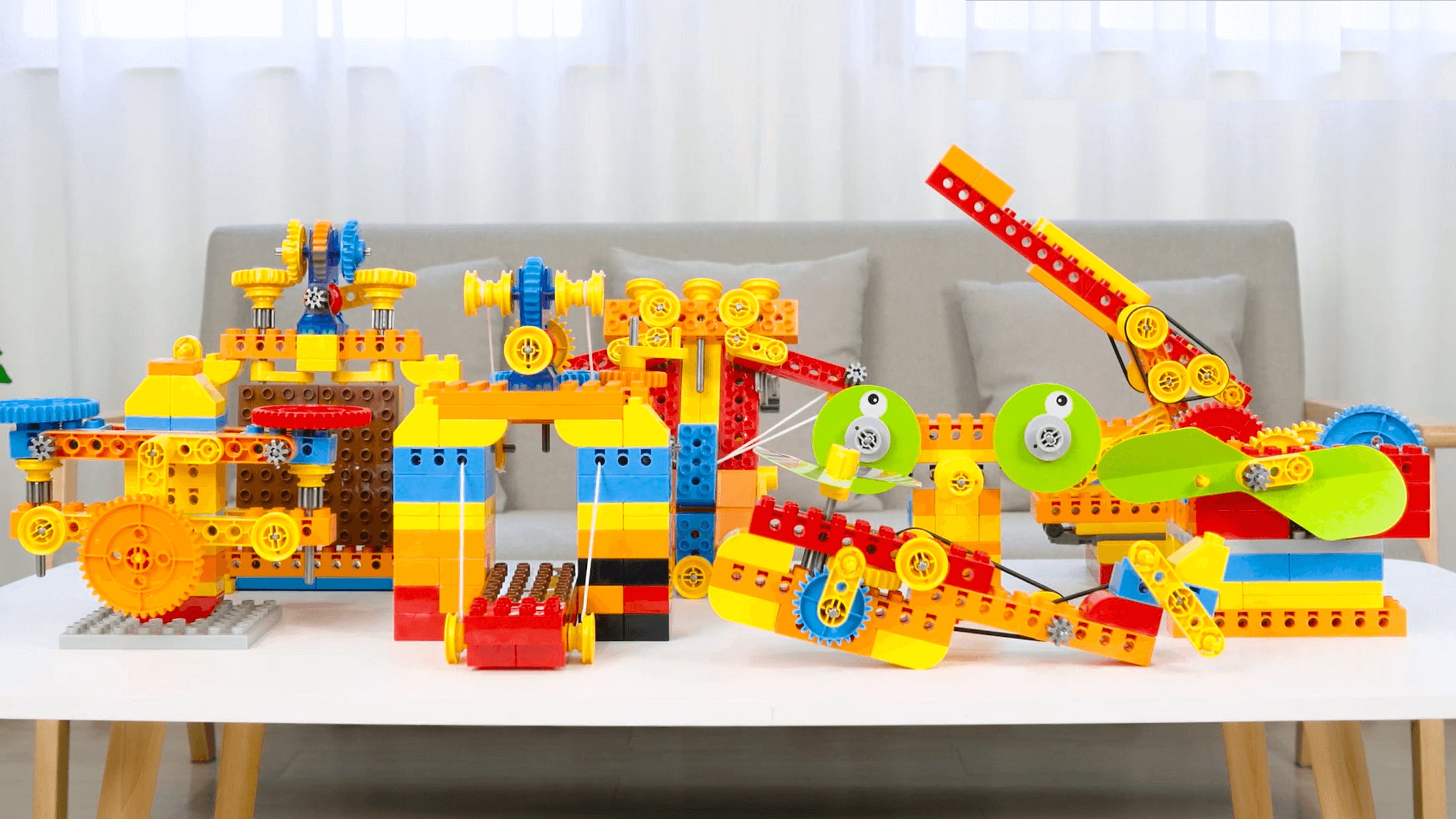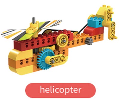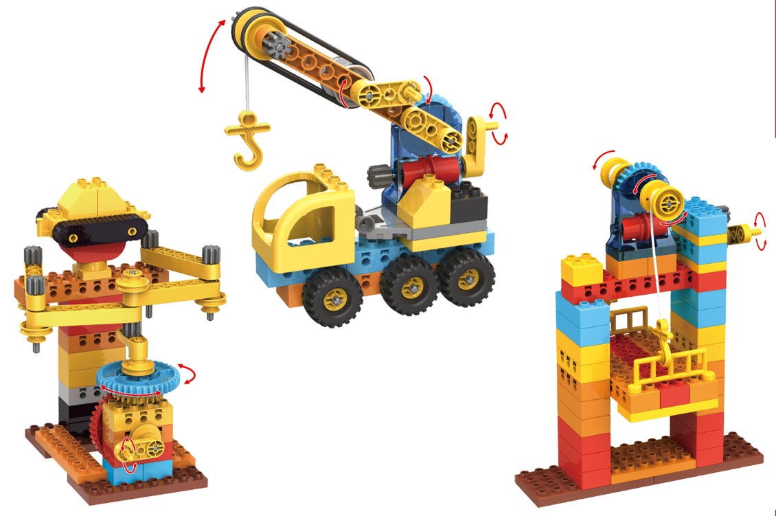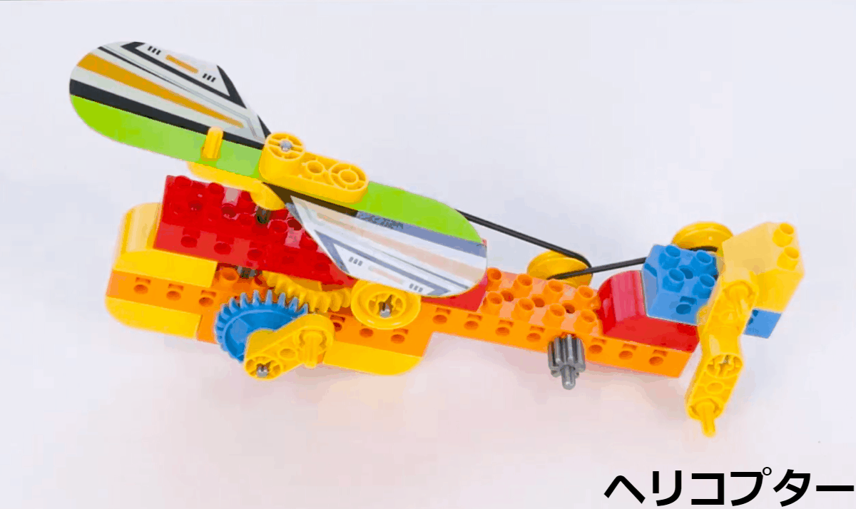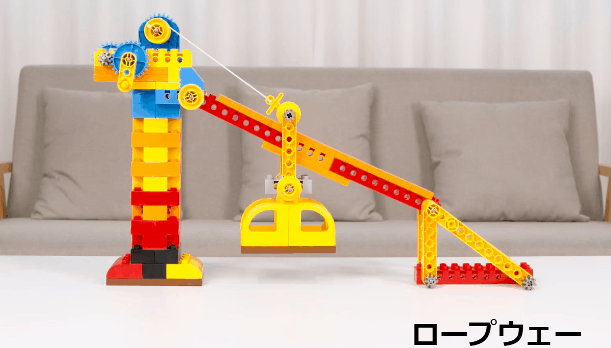 ヘリコプターやショベルカー、ロープウェーや謎の生物まで。ギアやプーリーを用いて実際に動かせる様々なものが簡単に作れるブロックです。