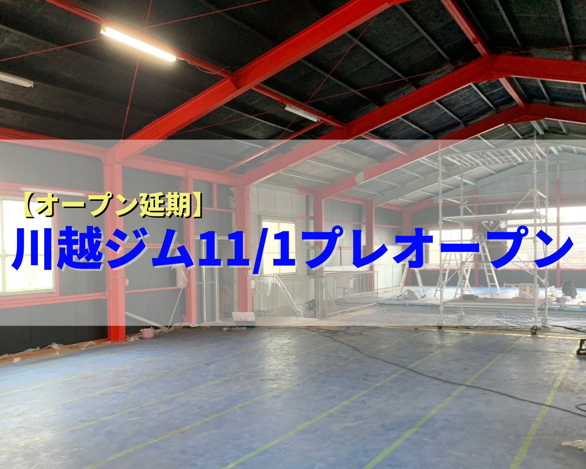 川越ジムですが、オープンに向け作業を進めておりますが、ジム設備、工事材料の多くが海外からの輸入となっています。 しかし、コロナ禍の影響から海外からの輸送が遅延している状況から今回オープンの延期を決定いたしました。 今後のオープンスケジュールは下記となります。 10月10日 無料体験受付開始 11月1日 プレオープン 無料体験スタート 11月15日 各クラススタート 2022年2月 グランドオープン 2F グラップリングスペース 2F フィットネススペース 1F ケージスペース のオープンは順次お伝えしていきます!