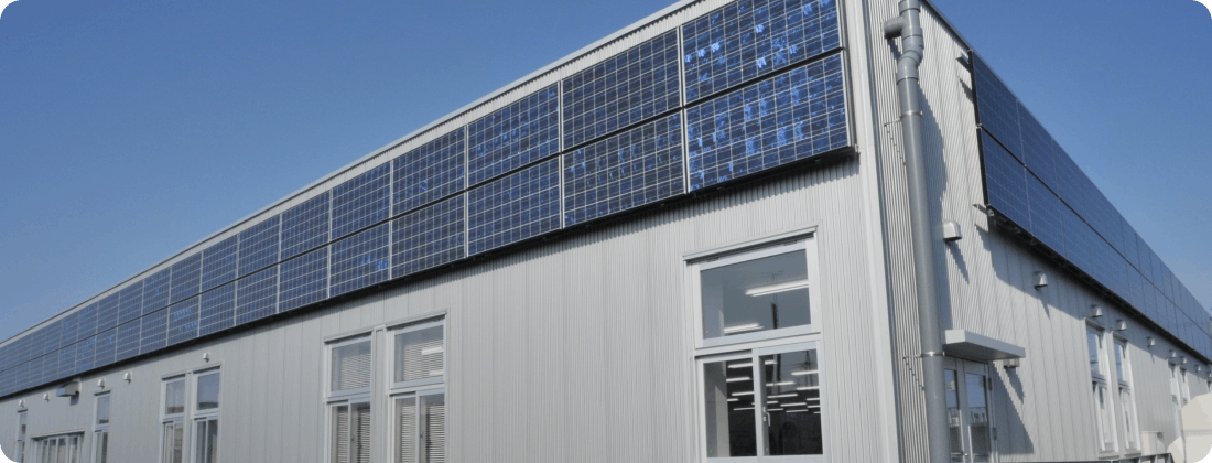 場内の光源は全て工場の壁面のソーラーパネルで発電しています。
