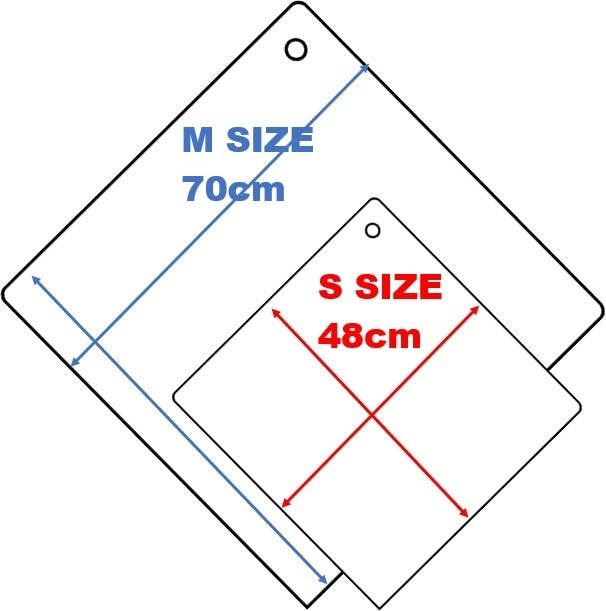 A5:48cmですと2段に重ねたお弁当箱 (例:横9cm×奥行15cm×高さ8cm) や、70cmですとA4サイズ (210mmx297mm) を目安にして頂けるとイメージ頂き易いと思います。