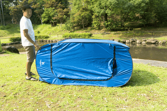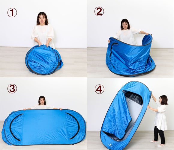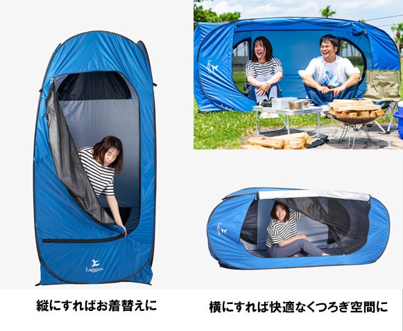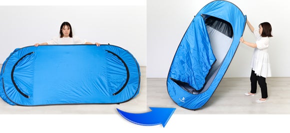 縦に使えば簡易型の更衣室に、横に使えばソロキャンプや海水浴用のシェルターに早変わり。