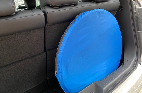 【Freely(フリーリー)】は、折り畳むと直径65cm、厚さ5cmと薄くコンパクトにまとまります
