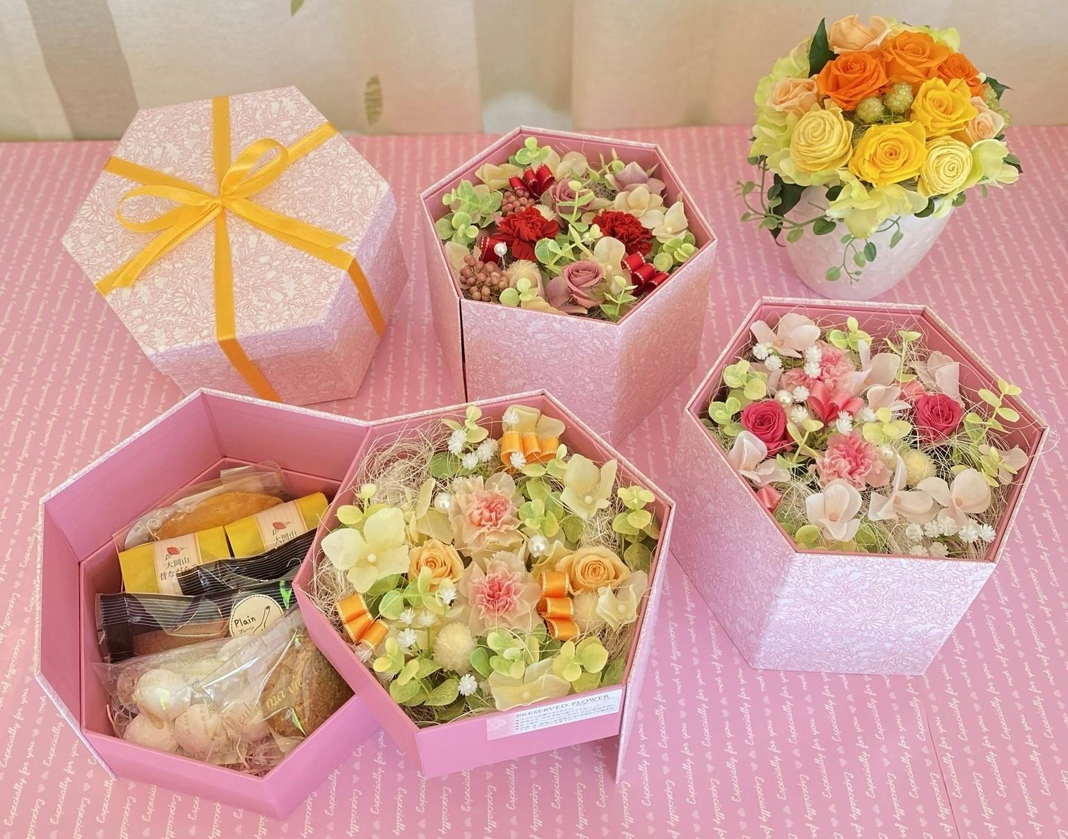 さて今日は都立大学駅近くにありますお花屋さん、シーズン花達とのコラボ商品をご紹介します。ケーキ屋さんとお花屋さんのコラボ!?と思われるかと思いますが、プリザーブドフラワーと焼菓子をセットにした、見て楽しむのはもちろん、食べても楽しめるギフトセットです!しかもお菓子を食べた後、下の段は小物入れとしてもお使い頂けます。例えば、玄関に置いて自転車や車の鍵入れにしたりするのはどうでしょう?閉じれば見えないので、オシャレに収納できます!シーズン花達さんのご厚意で、お値段も4000円+税で、お手頃な価格が実現しました。当店のHP(http://www.teaful.jp)から簡単にお求めいただけます。