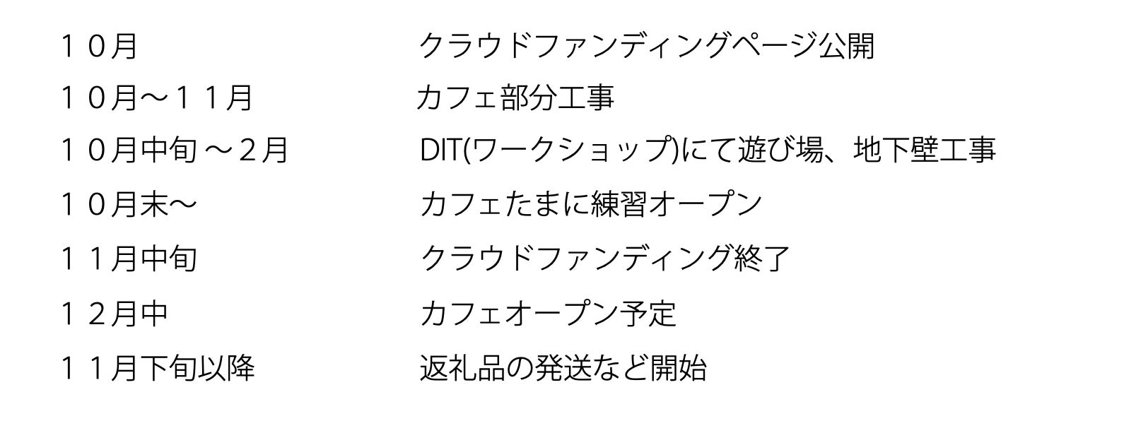 ※2月までのDIT部分の材料費および施工費に今回のクラウドファンディングで集まった資金を使わせていただきます。カフェオープン時にはまだその部分は未完成のままになります。
