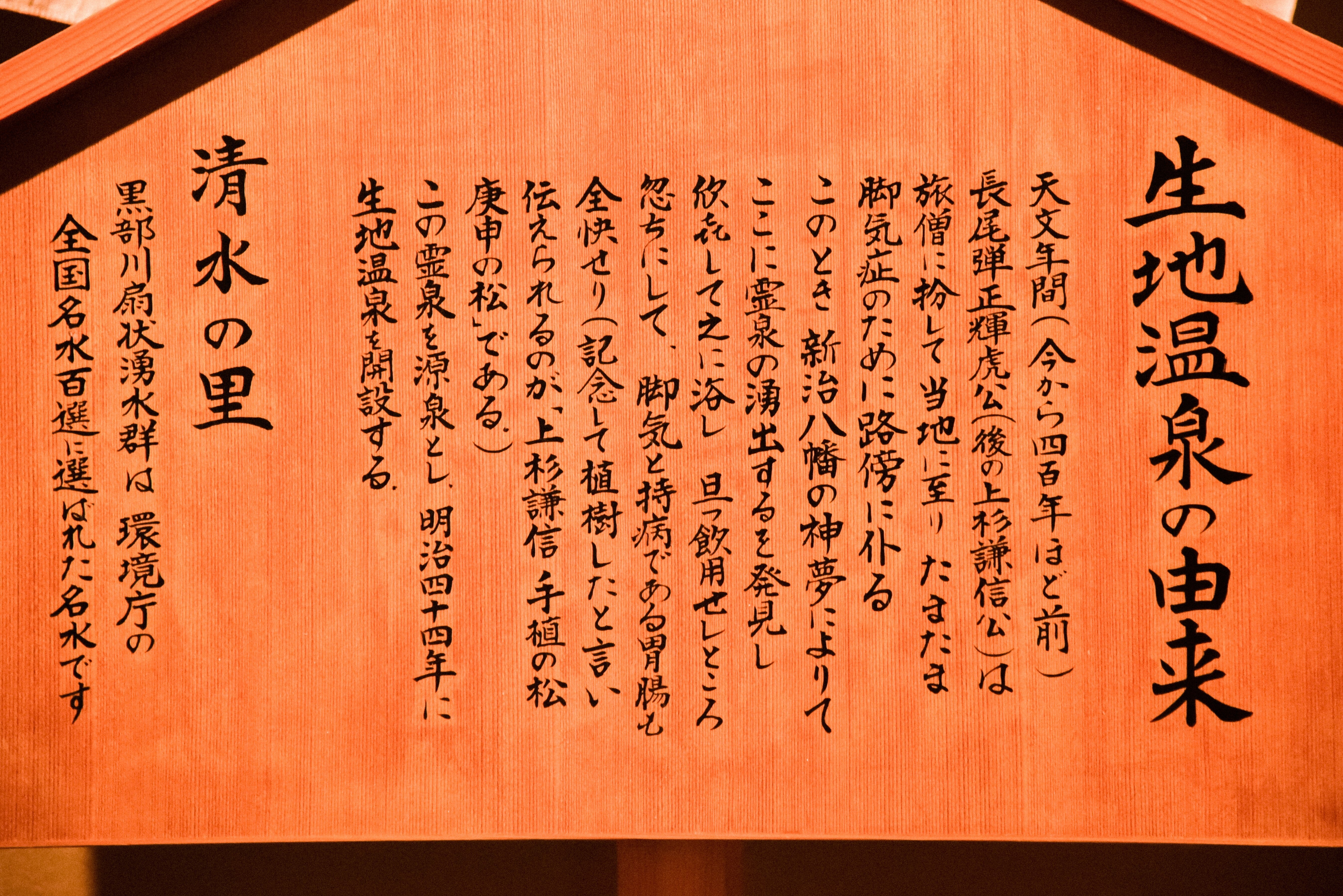 生地温泉は上杉謙信による発見、という開湯伝説がございます。