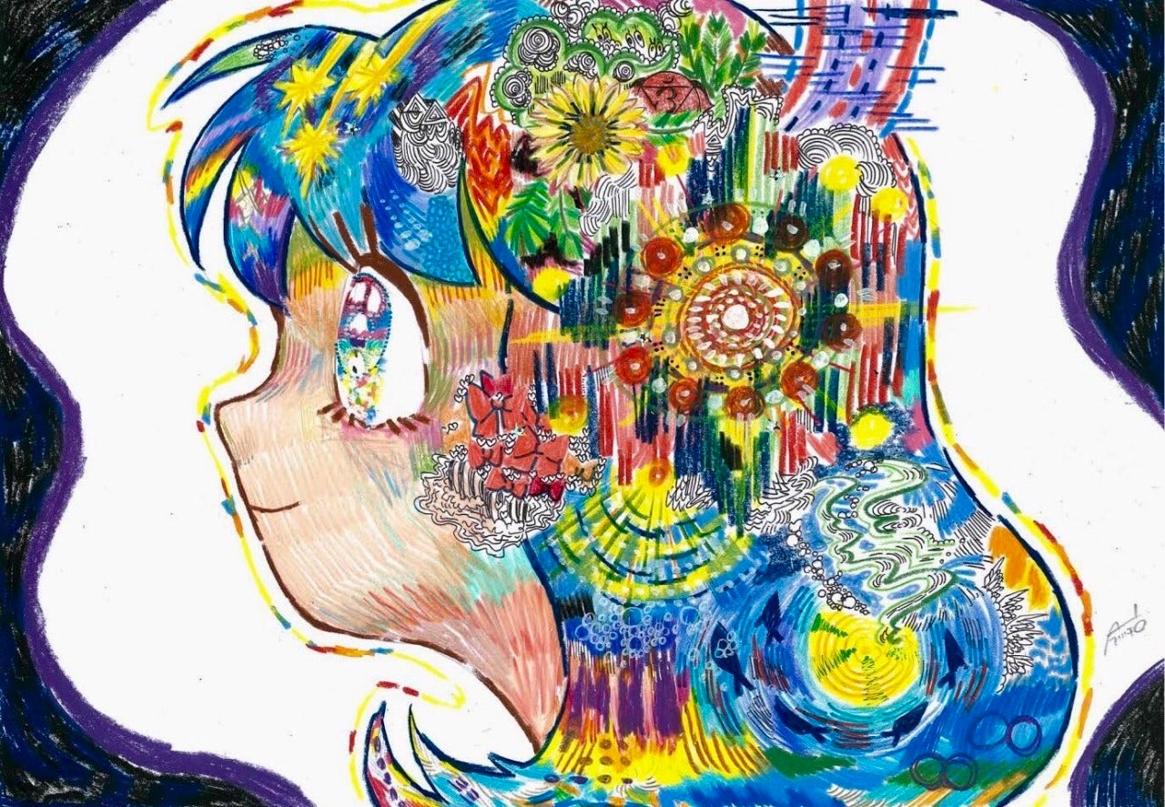 「目に見えない妄想を絵に描いて擬似的に可視化したい」という願望で描き続け、いろいろなテイストで描くようになりました。