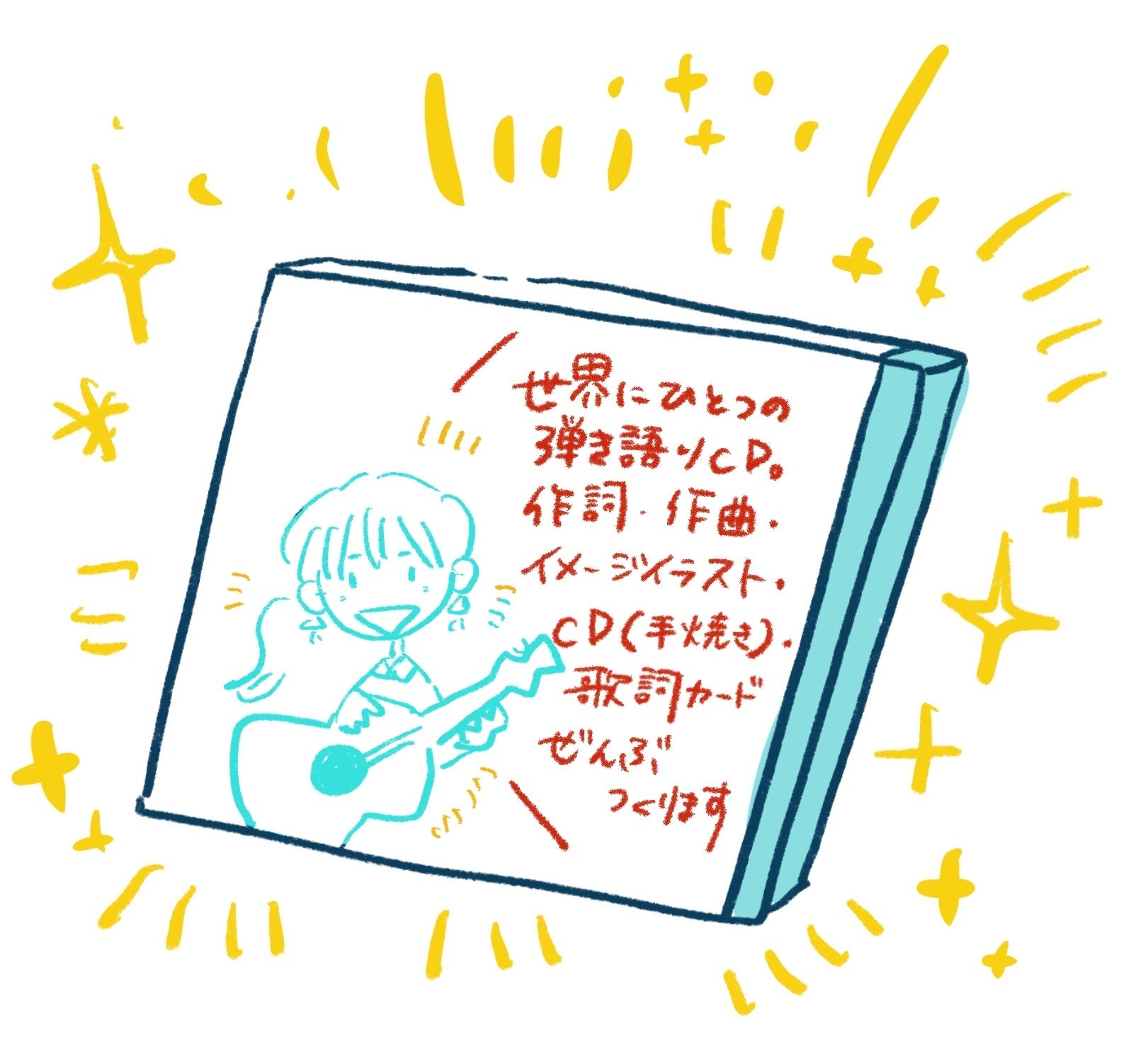 アコギで一曲作詞作曲し、その曲をイメージしたイラスト(デジタル)を描き、mp3データと、世界に一枚だけのCDをお送りします。