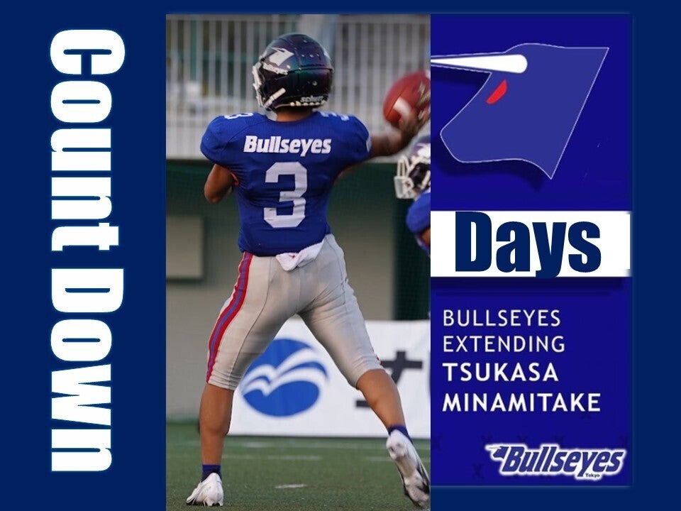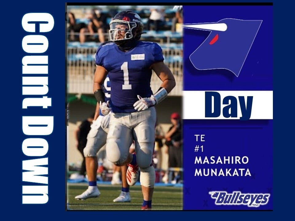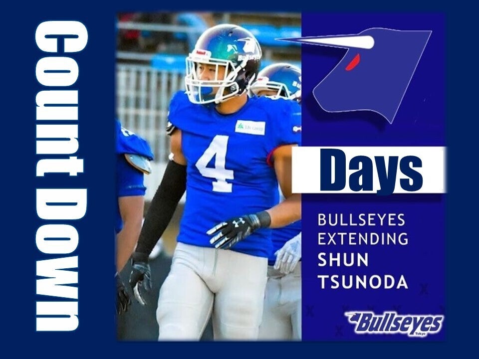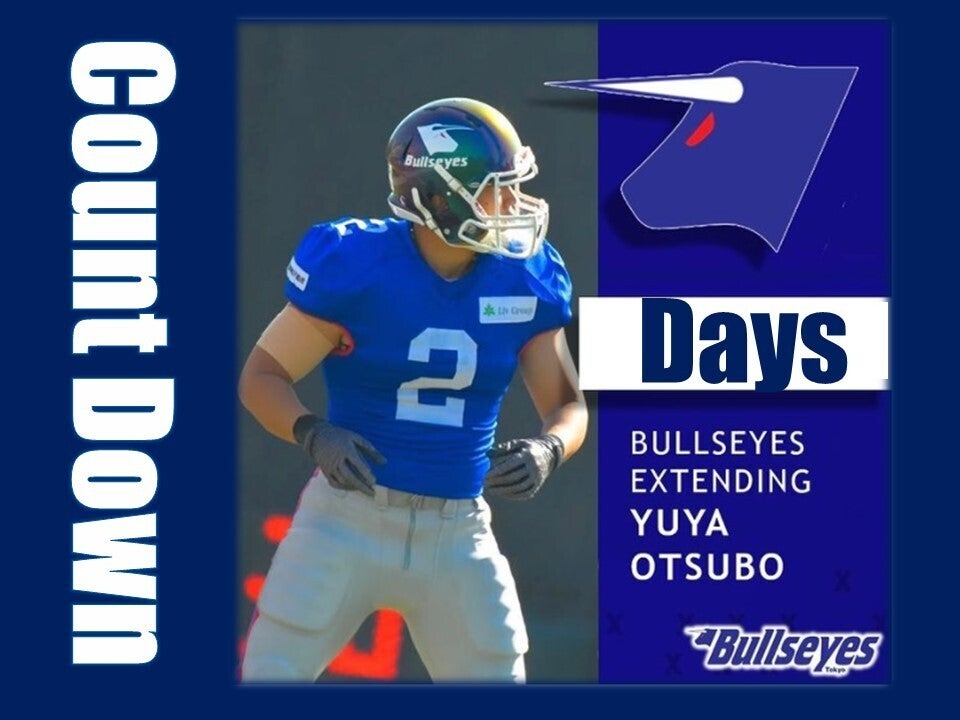 カウントダウン "2Days"は、初戦のBULLS戦で、激しいヒットとタックルでチームのモメンタムを高め、勝利に貢献した大坪選手です。その活躍はXリーグでも注目され、初戦のヒーローインタビューを受けました。11/7 ブラックイーグルス戦、11/23 ペンタオーシャンパイレーツ戦で、初戦の再現を観に是非直接試合会場にお越し頂き、ご声援ください!(Xリーグオフィシャルサイトより)