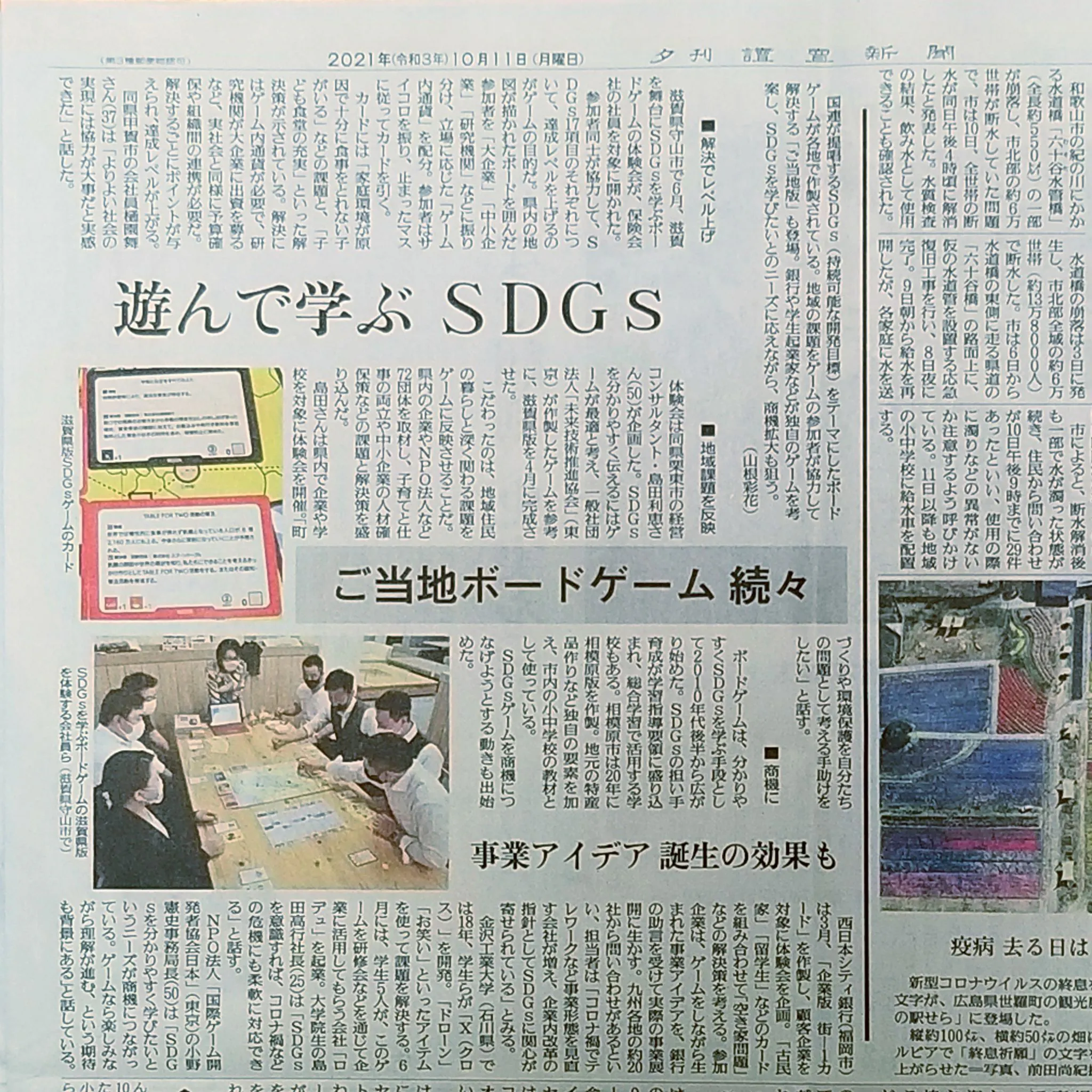 6月4日のSDGsボードゲーム体験会の様子を取材いただき、発刊の3日前まで丁寧に電話取材もされて、協会にも確認の電話もされて、紙面に大きく取り上げていただきました。