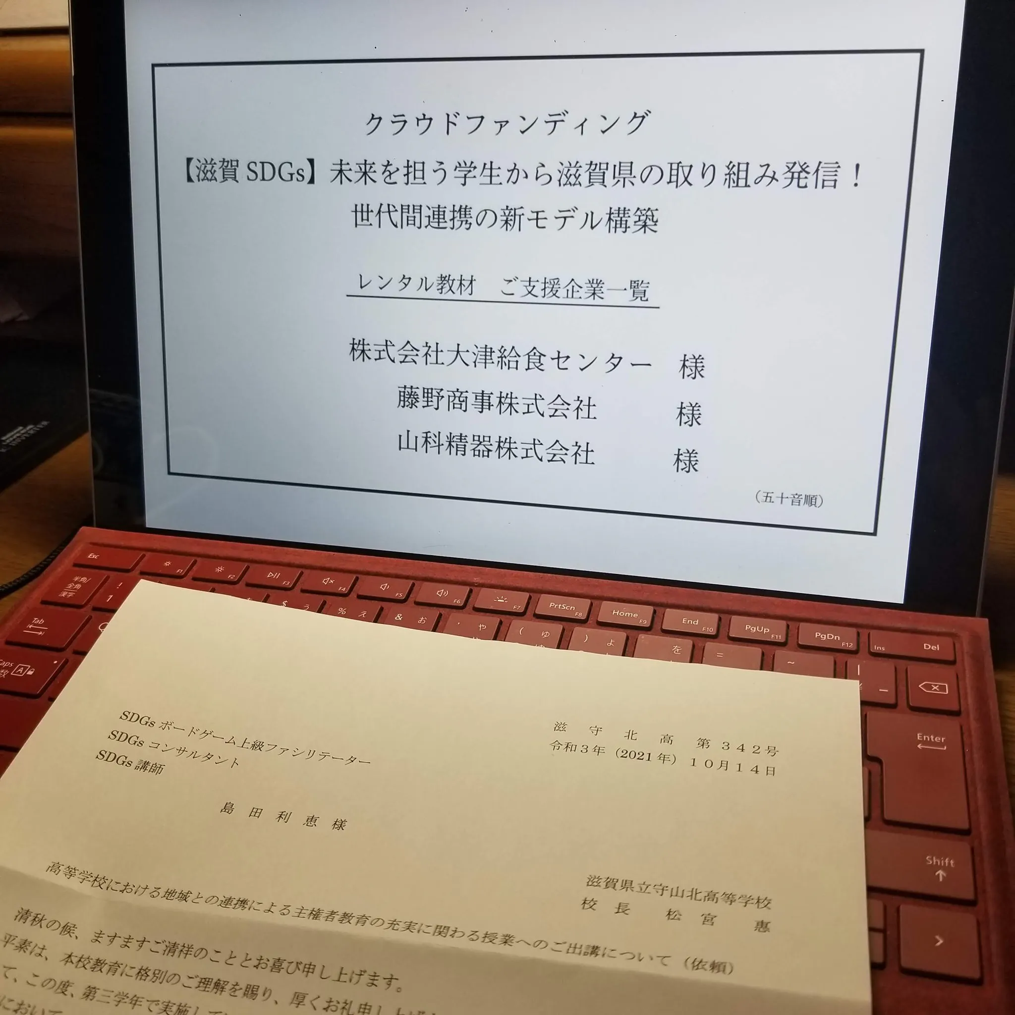 クラウドファンディングのご支援のお陰様で開催させていただけるSDGs学校研修のスライドに