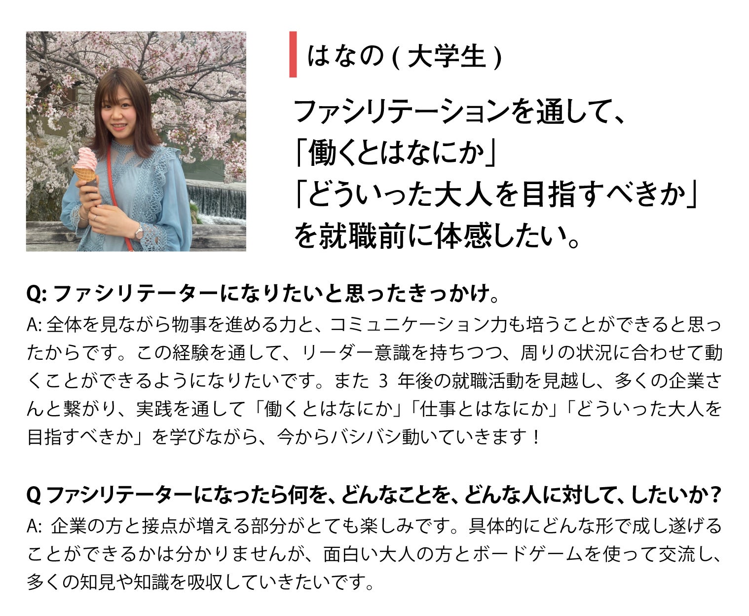 ※ワークショップでは、学生ファシリテーター(上級ファシリテーター島田同席)もしくは認定ファシリテーターが対応いたします。