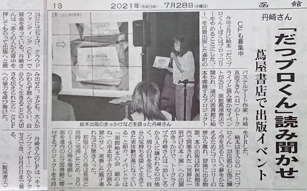 イベント当日、函館新聞社の記者の方に取材していただき、ご報告が遅くなってしまいましたが、7月28日の函館新聞に掲載していただきました。