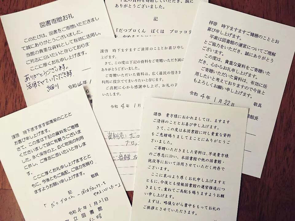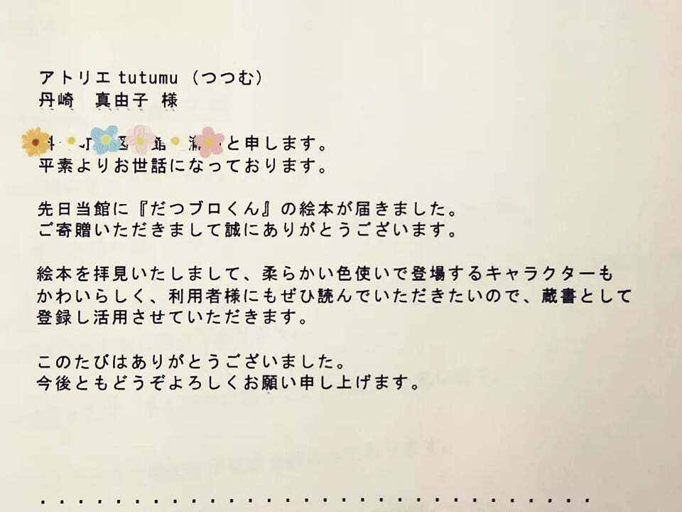 だつブロくん絵本を寄贈させていただいた道内の図書館より、ぞくぞくとお礼のお葉書やお便り、メールをいただいています♪