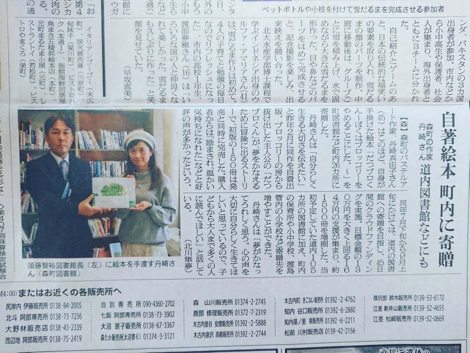 また、函館新聞社様に先月森町立図書館に寄贈に伺った際に取材をしていただきました。