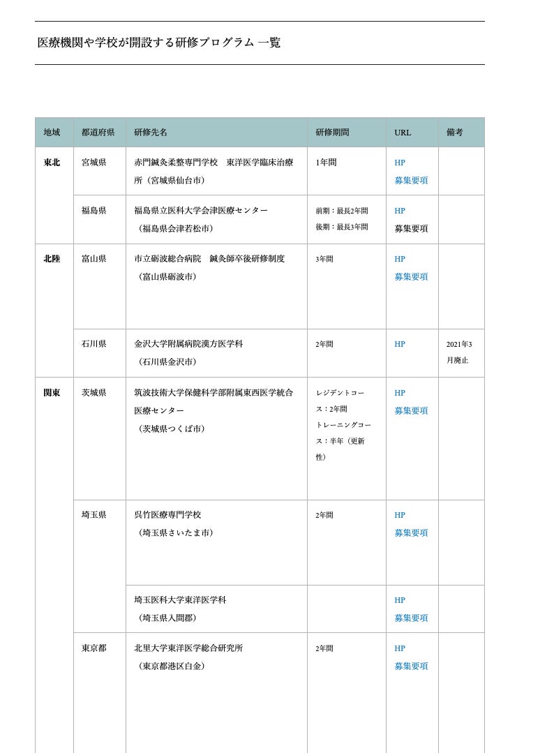 資格取得後に受講・鍼灸師の資格取得後に受講・参加ができる「研修制度」を一覧にして、掲載しています。