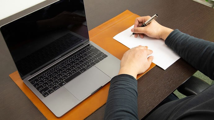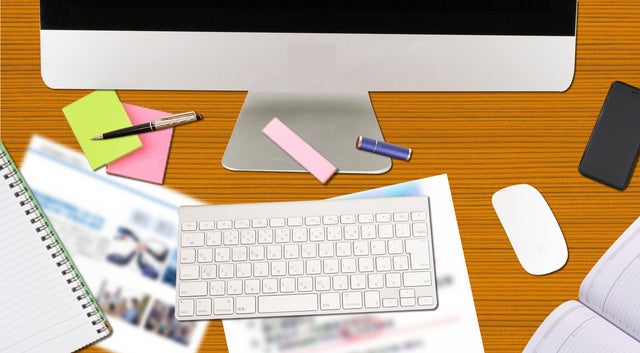 整頓された机で仕事をする。