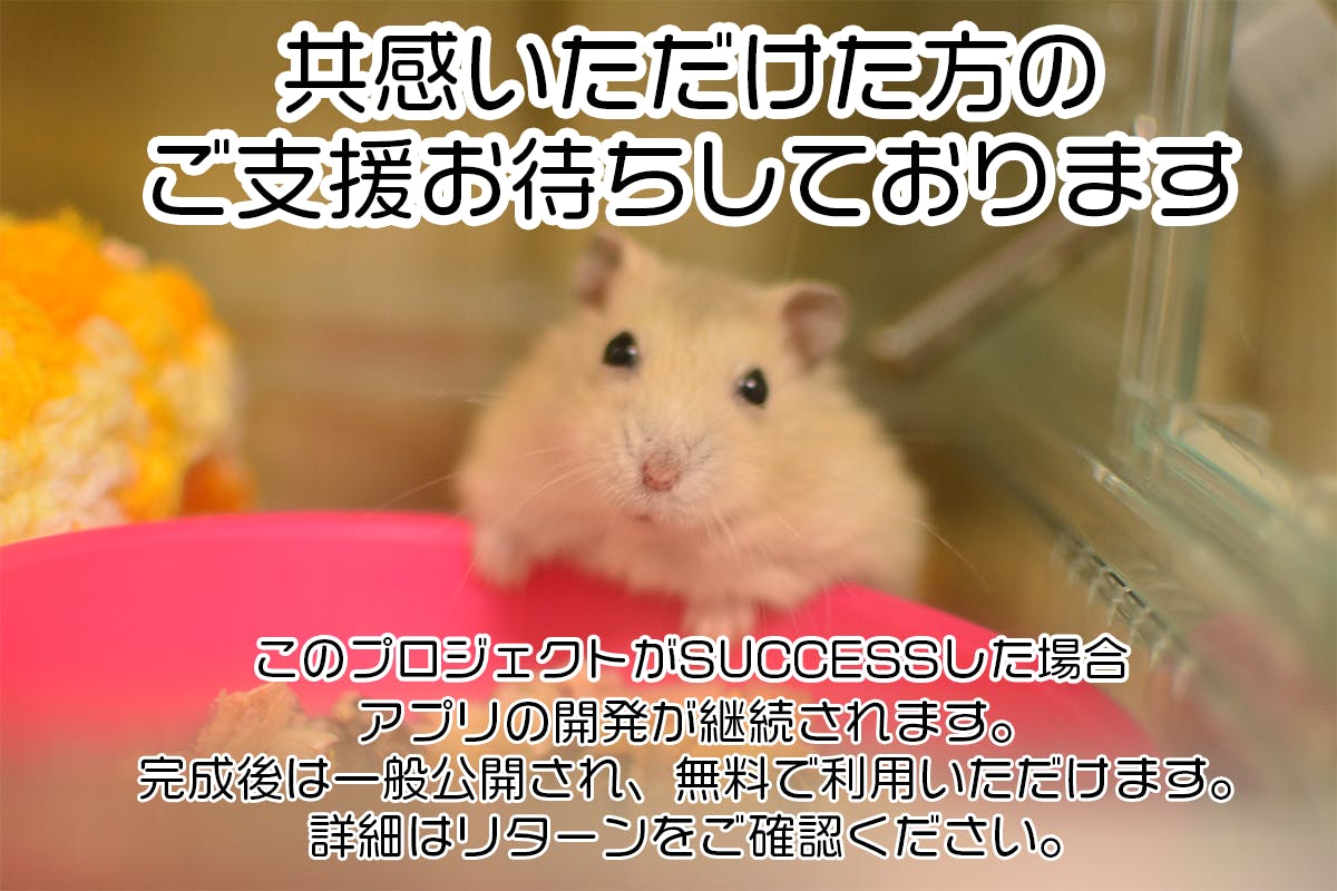 このアプリが完成し、そして皆さんに使っていただければ、「自慢のかわいいハムちゃん写真」と「グッとくる一言」がセットになった「ハムでひとこと」を大量に楽しめるに違いない。。。そして皆さんと一緒に盛り上がれるに違いない!!そう信じています。