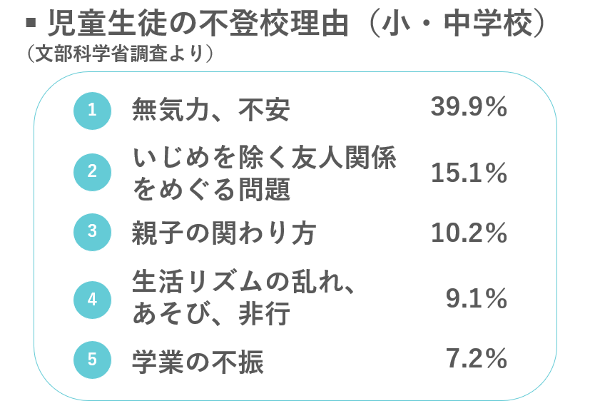 不登校原因の1位は「無気力・不安」なのです。