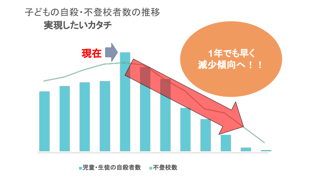 子どもの不登校・自殺者数の増加傾向には、何としてもブレーキをかけなければなりません。