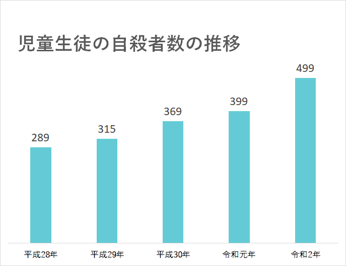 昨年(令和2年)は新型コロナウイルス感染拡大で社会が混乱に陥る中、日本では、これまでで最多となる499人の子どもが自ら命を絶ちました。さらにその中には、小学生が14人も含まれていました。