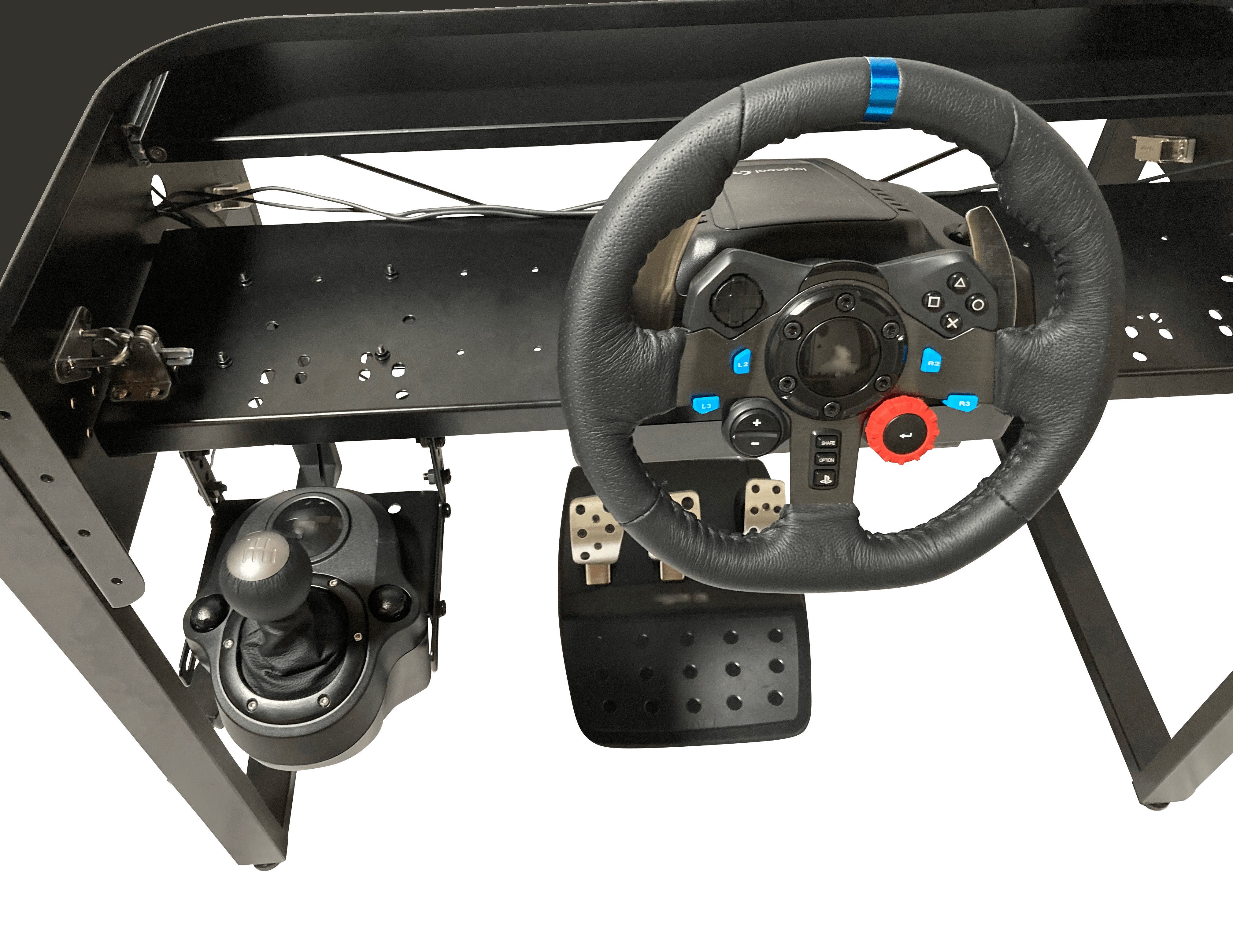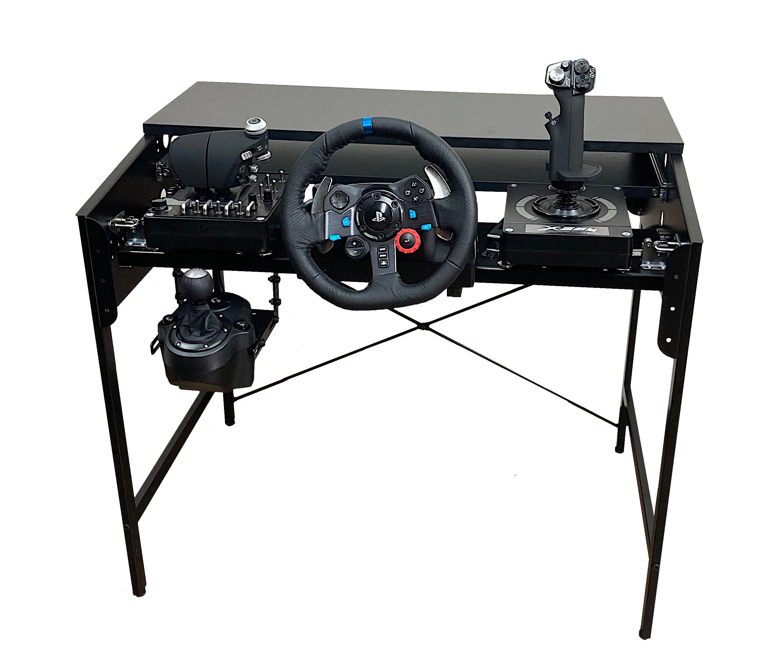 ハンドルコントローラー・フライトスティック・シフターを全て同時に取り付けることができます。