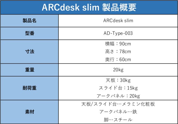 今回のプロジェクトの目的であるARCdesk slimです。これまで高価で大きなイメージのあったARCdeskシリーズですが、slimは価格も大きさもコンパクトになっています。
