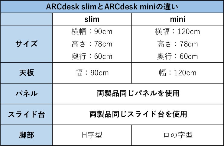 既存の製品であるARCdesk miniと新商品ARCdesk slimの違いを紹介します。
