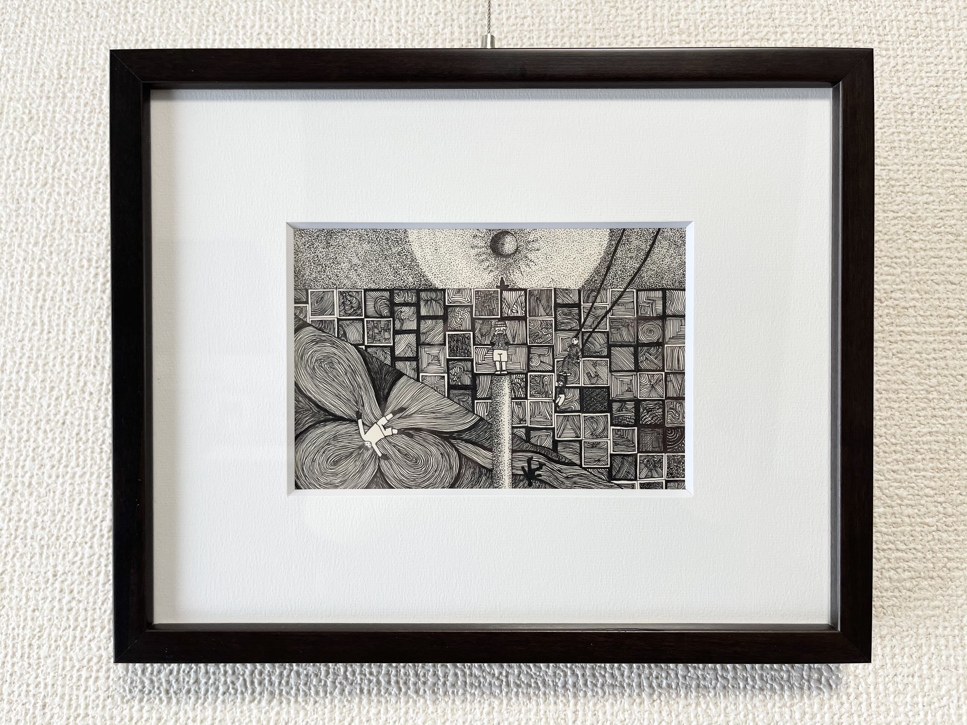 主に0.3mmのペンを使って、モノクロの世界を描いています。