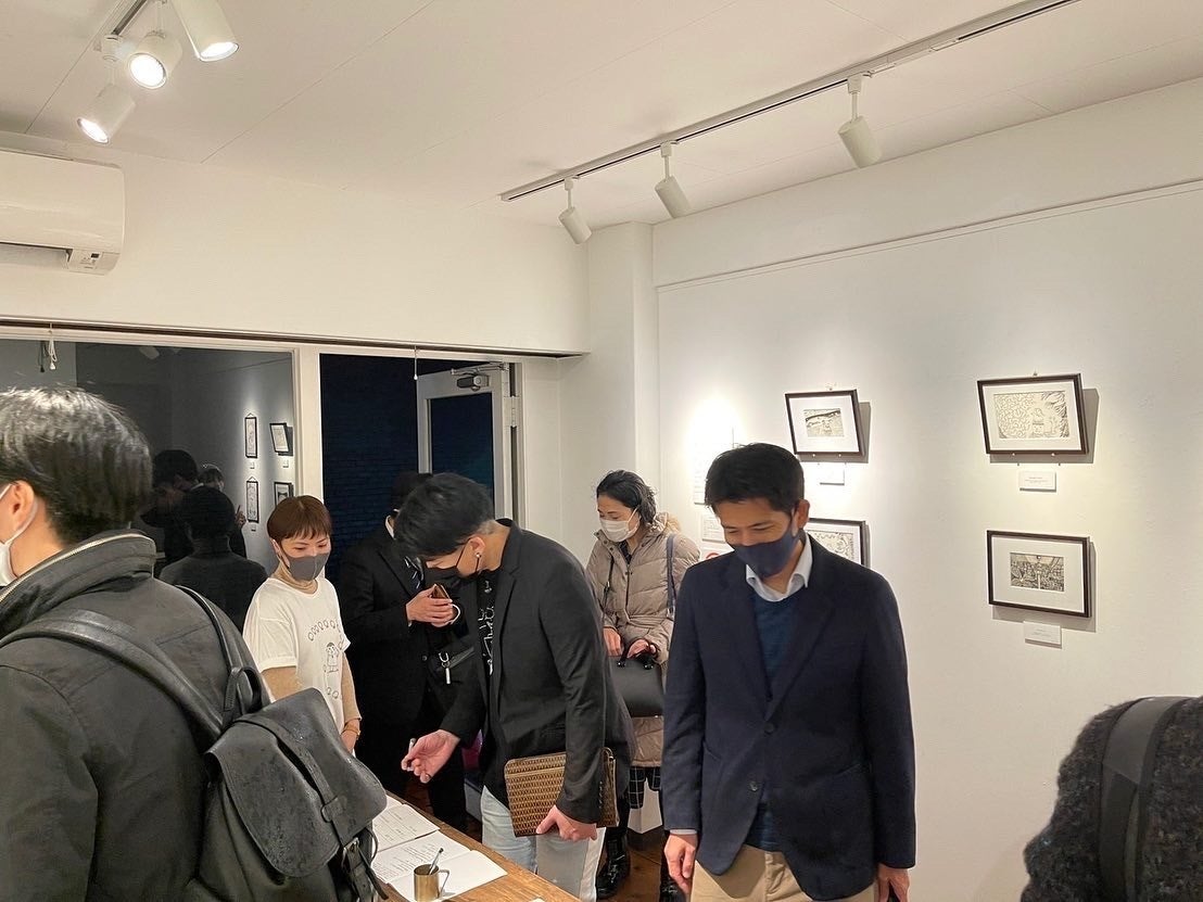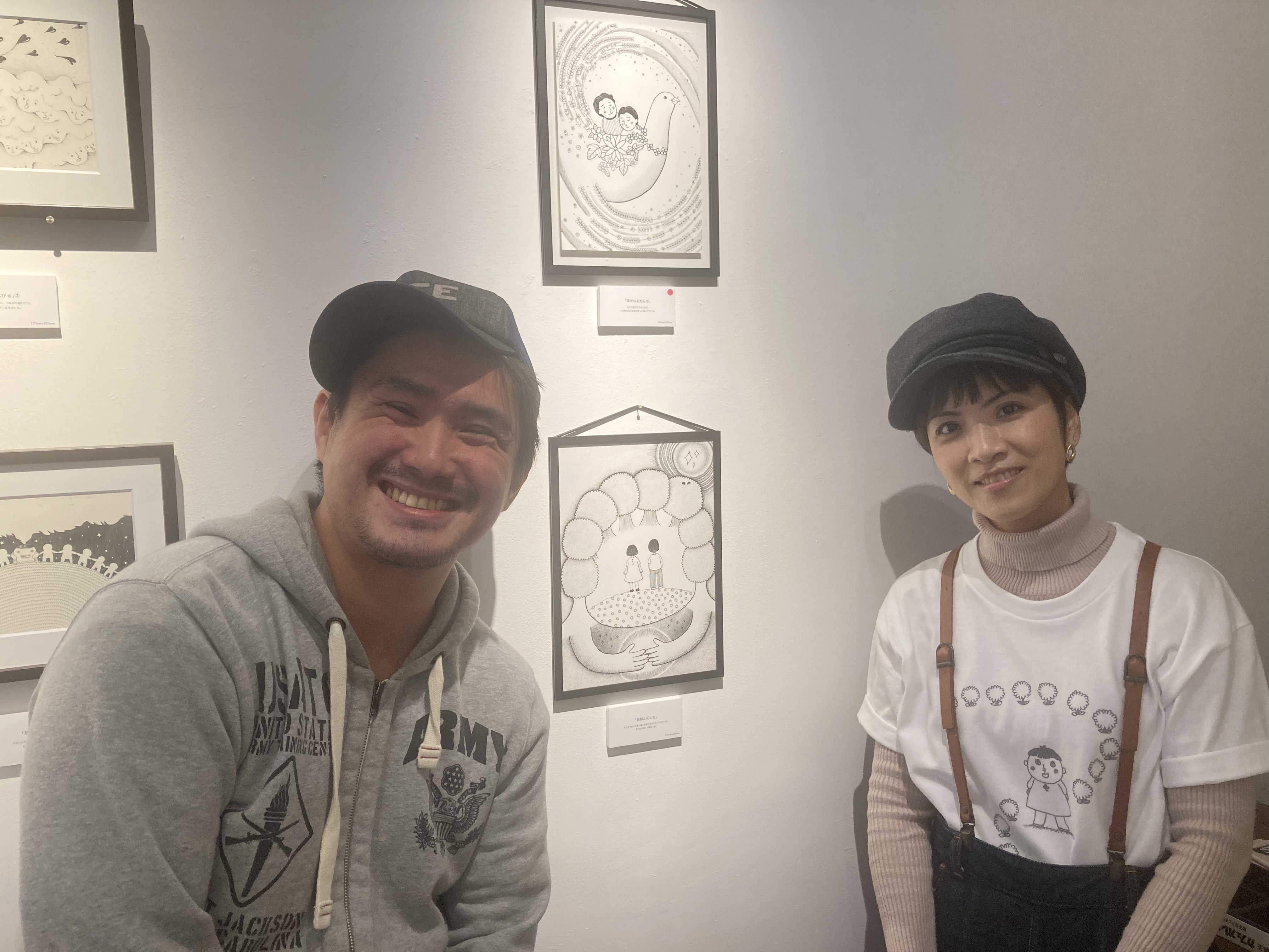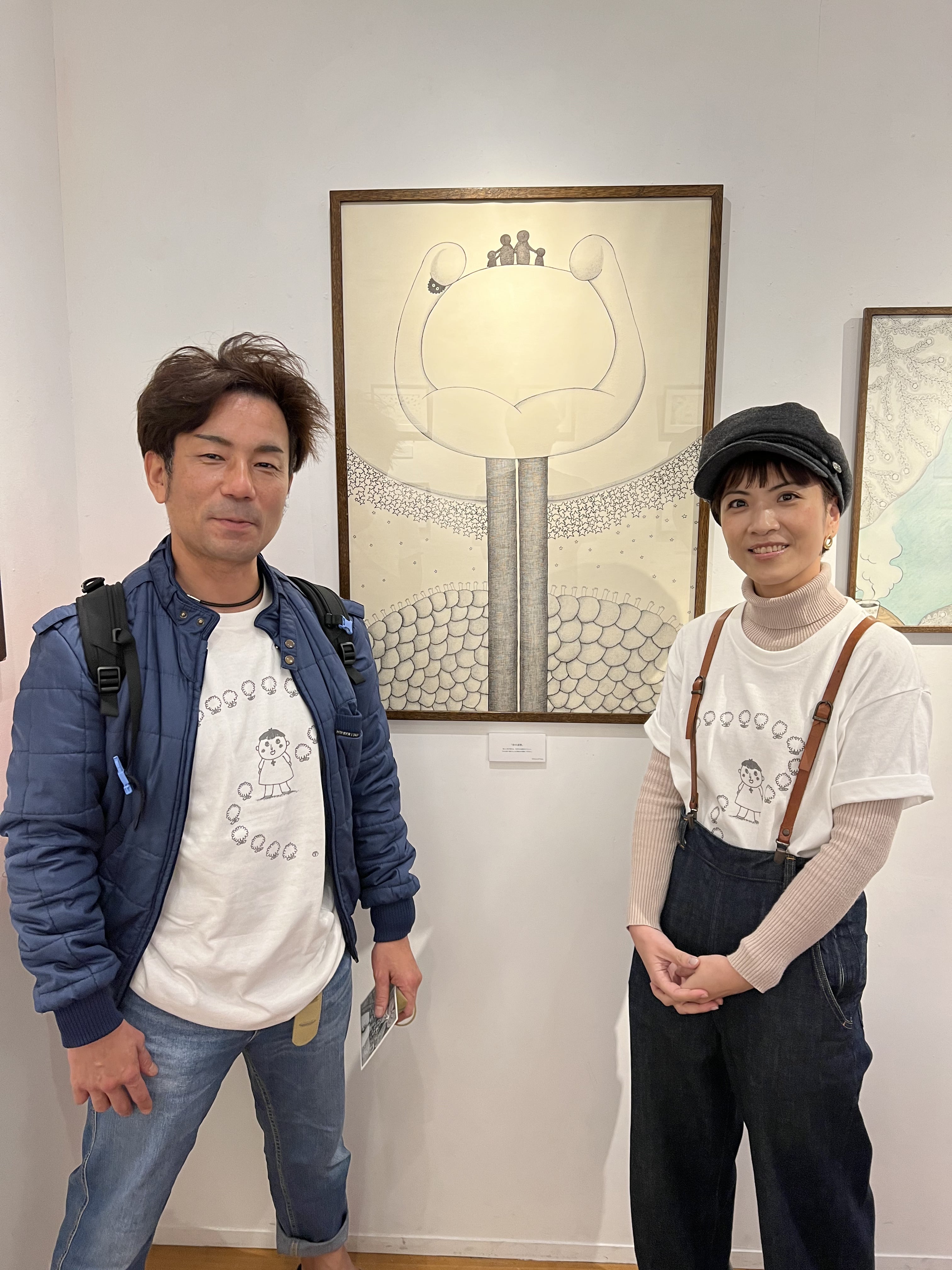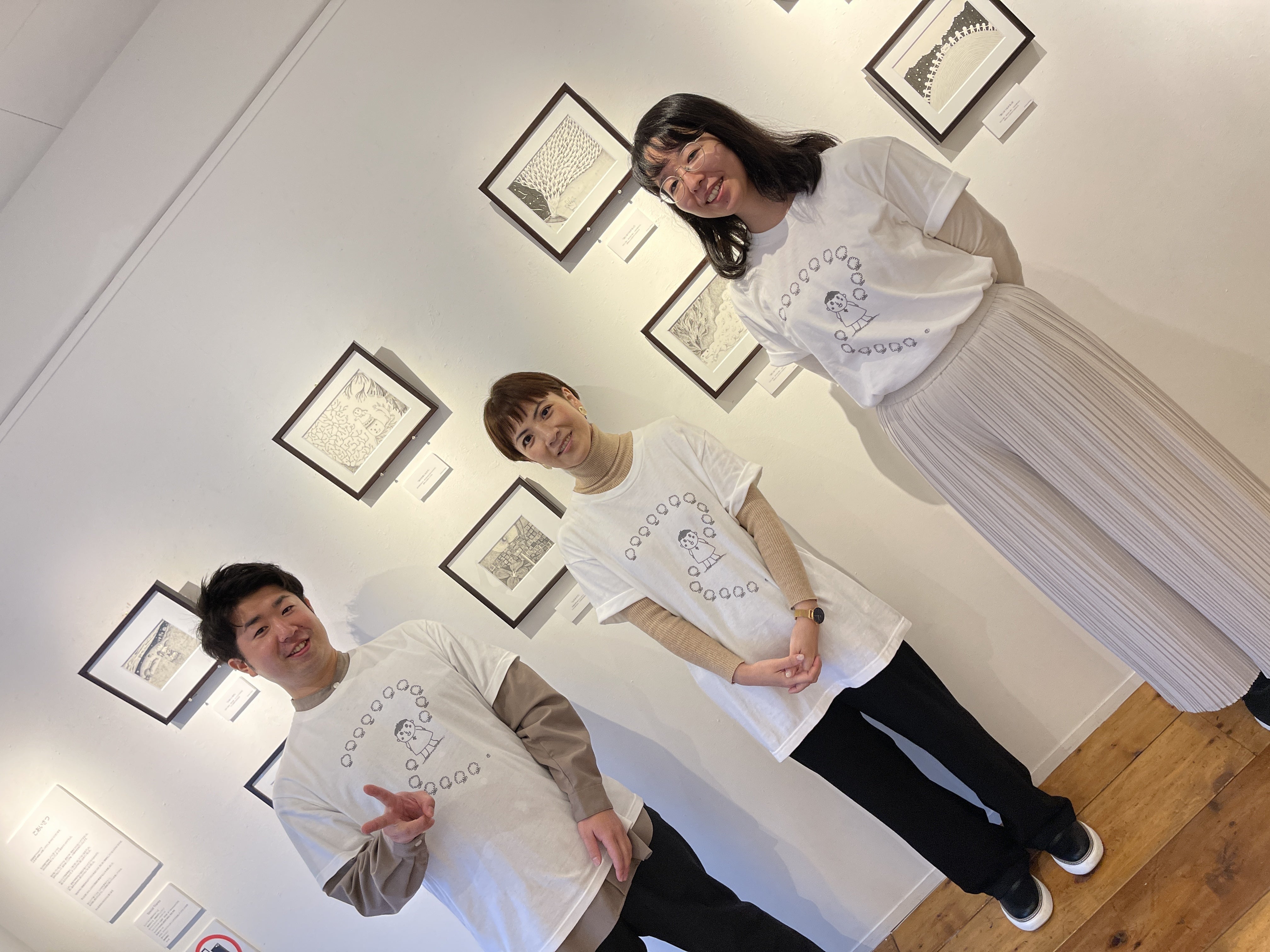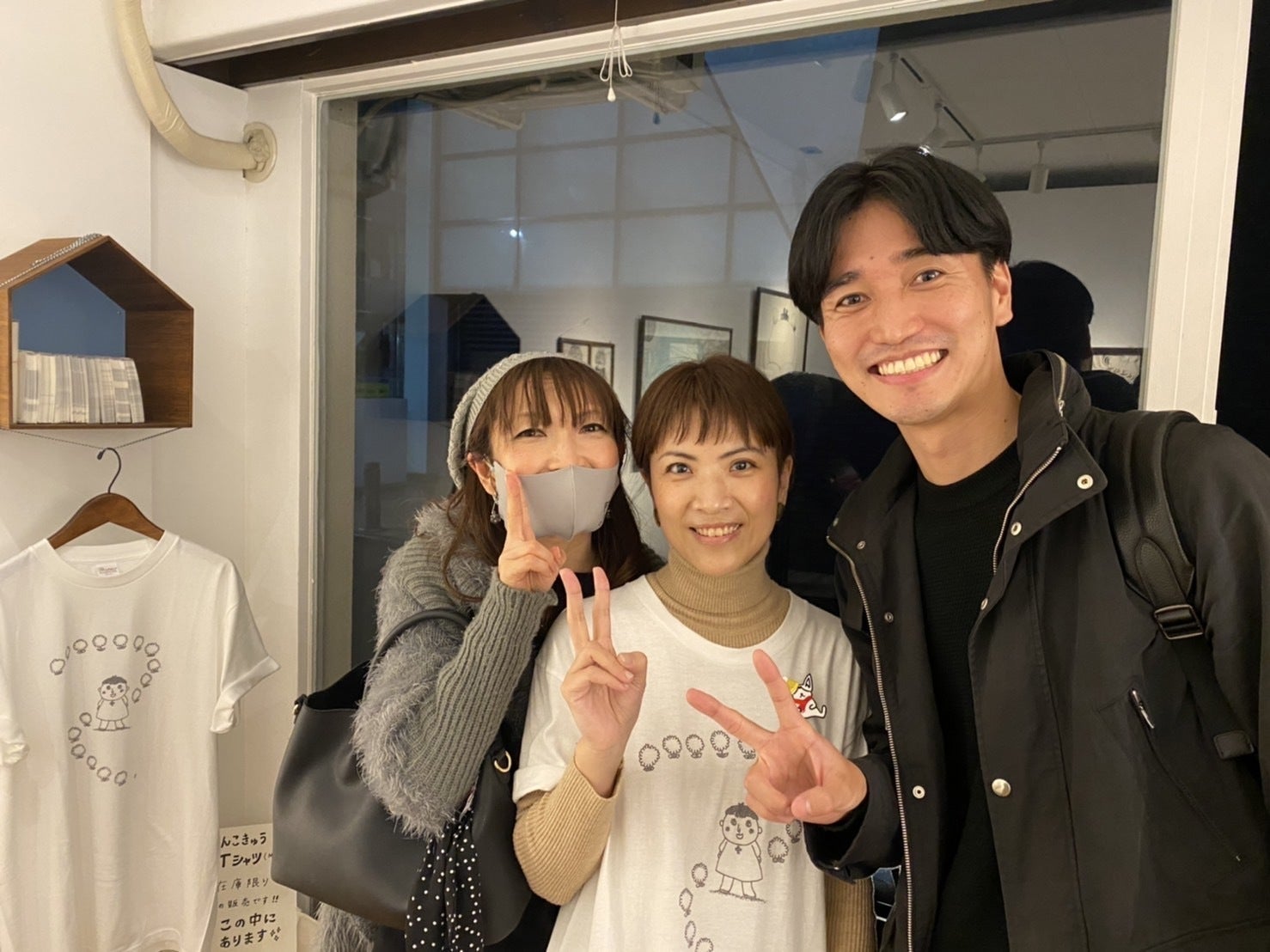 お仕事の合間に時間ができたからと、観に来てくれたまさしさん。作品集や個展のことも話してたので観てもらえて嬉しかったです。しんこきゅうTシャツも買ってくれてありがとう!!