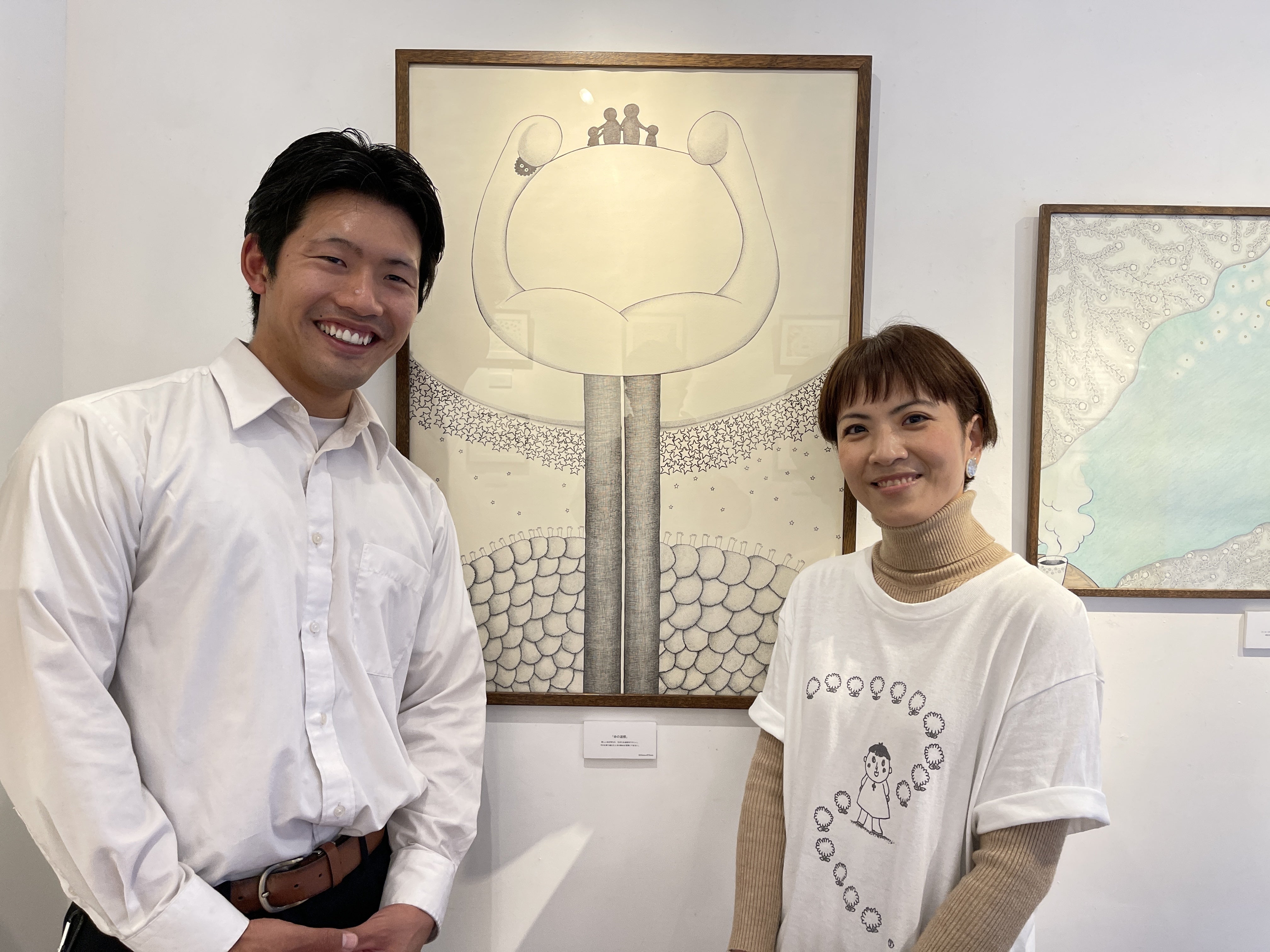 搬入のお手伝いもしてくれた蓮根さん、とても助けられました。彼女も画家として活動されていて素敵な世界観の持ち主です。