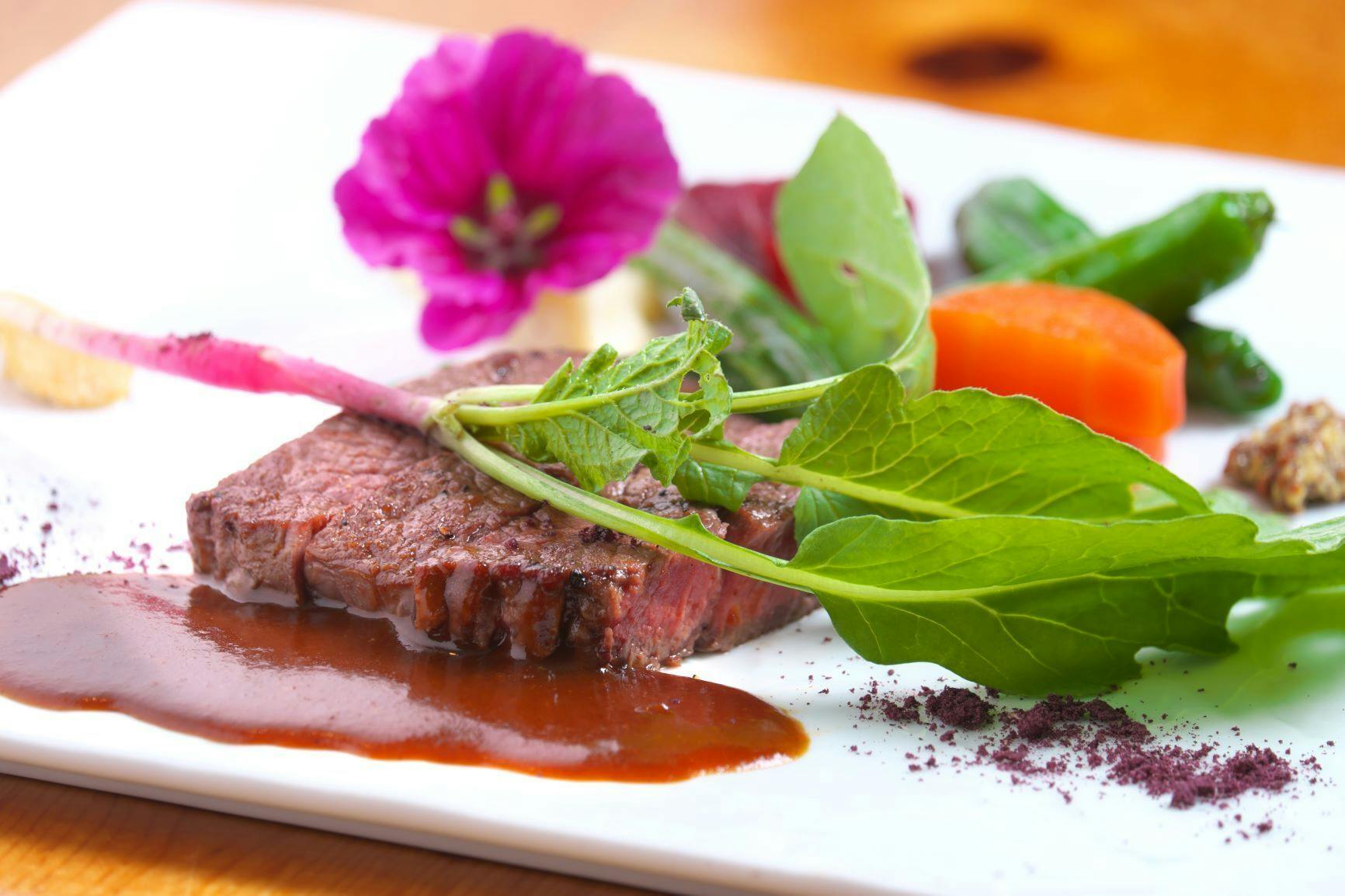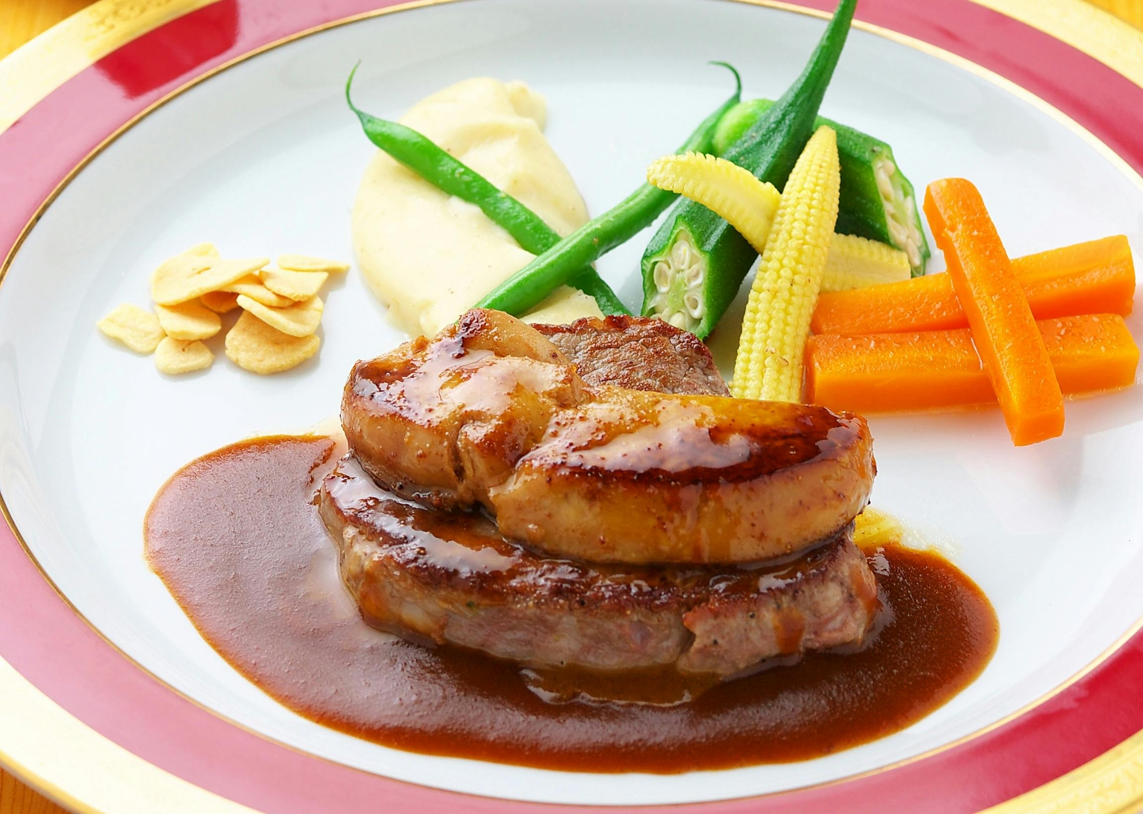牛ヒレ肉のステーキ 和風テイストのデミグラスソース 近江の野菜添え