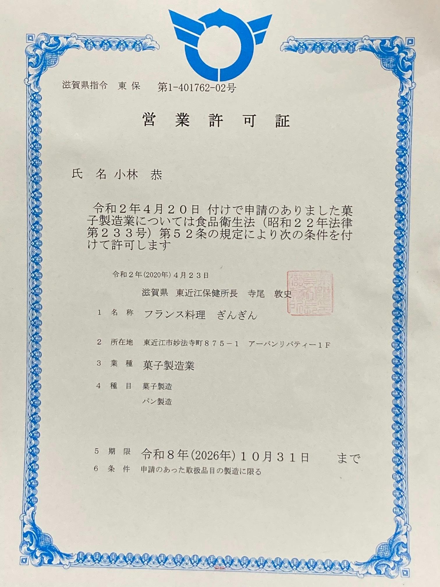 私は滋賀県東近江市でフランス料理『ぎんぎん』を経営しております小林恭(こばやしただし)と申します。夫婦二人三脚でお店を切り盛りしております。