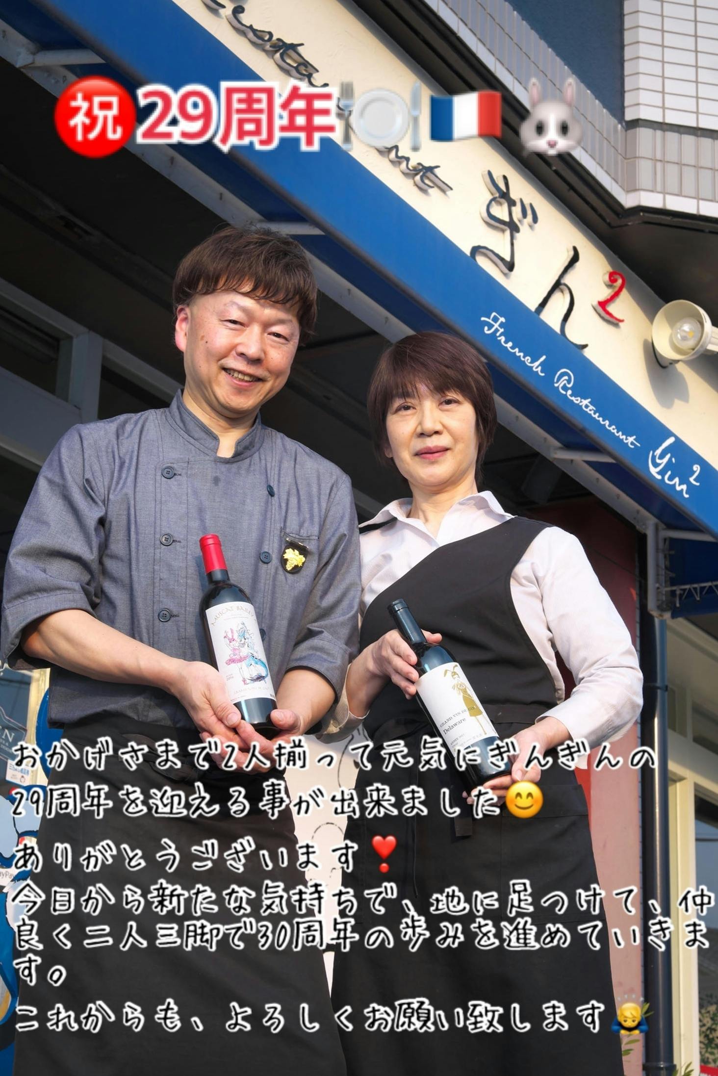 コロナ禍の緊急事態宣言下にありますが、お陰様で本日マダムと2人揃って元気に29周年を迎える事が出来ました♪
