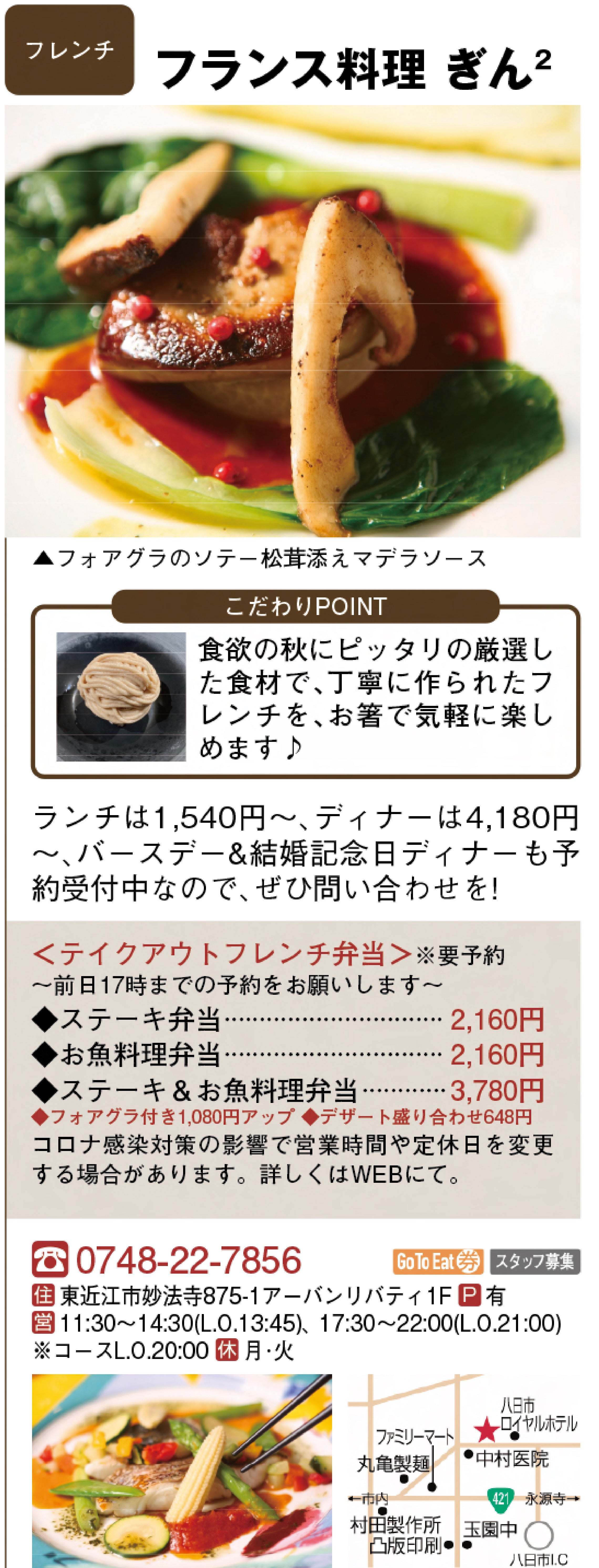 食欲の秋ですから、皆さんに是非秋の味覚を存分に楽しんでいただきたいと思っています。写真は、地元のフリーペーパーに掲載していただいた広告です。