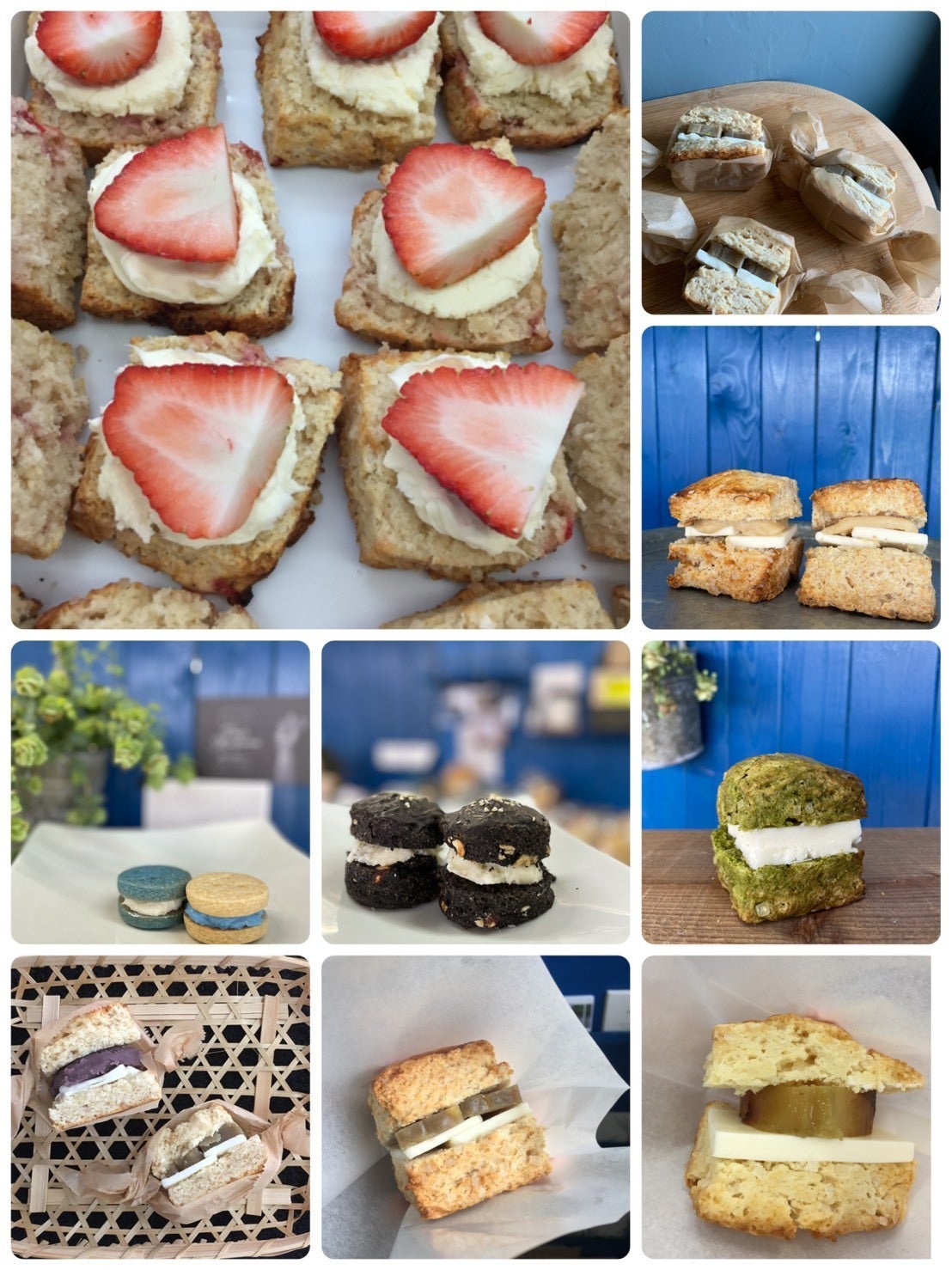 サンドスコーンもたくさんあります!!1番人気の栗バターサンドを始め、いちごのスコーン、ミルククリームサンドなどなどー、ザクザク食感のスコーンと季節のフルーツやクリーム、あんことのサンドスコーンも是非!お手土産にも是非です。