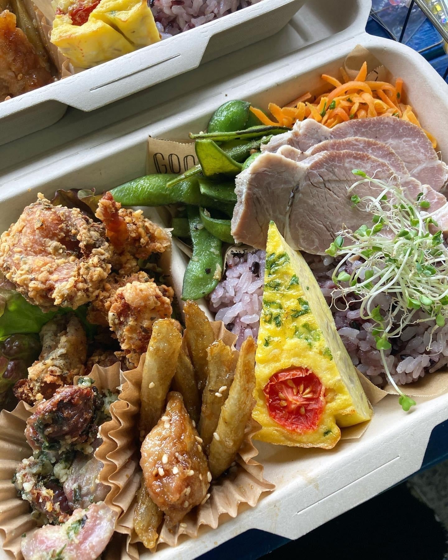 こちらは、今、お店で1番人気の7種のデリのランチボックスです。毎週内容を変えてお作りしています。