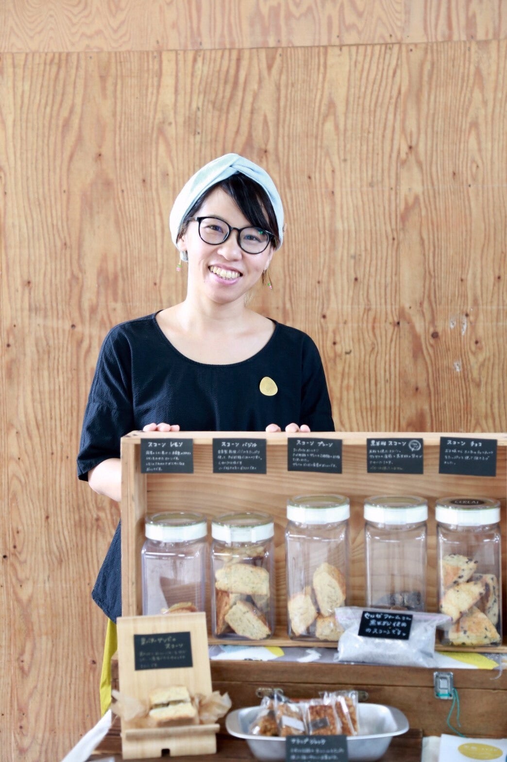 こちらのお写真は、Fuuさんです。お店を3年前にオープンした頃からスタッフとして働いてくださっていて、2020年〜スコーン製造販売を始めてくださいました。三雲のお店で作ったデリとお弁当を届け、Fuuさんに新店舗の店長になって頂き販売をお願いする予定です。