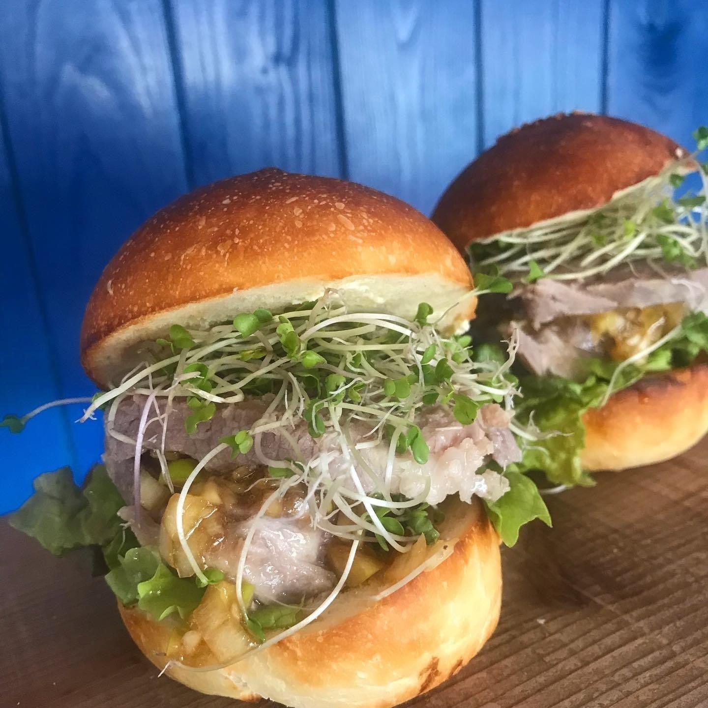 美味しすぎるパン屋さん!ウルーウールさんで焼いて頂いているバンズを使ったできたてハンバーガーも、キッシュやサラダとセットでゆくゆくは提供できたらと思っています。