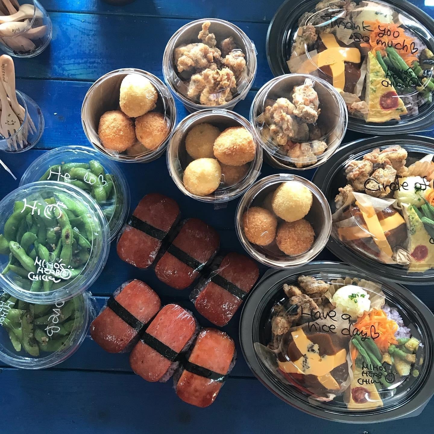 出店をはじめた頃は、木箱にハーブチキンを山盛り入れて!ハーブチキンだけで出店していたのですが、ありがたいことにすぐに完売となることが多く、もっと喜んでもらいたいと、ハーブチキンを揚げている間に、ランチボックスを作るようになりました。