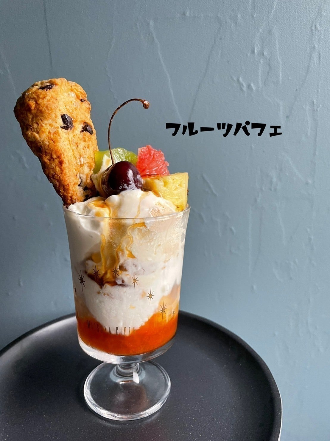 季節のフルーツとFuuスコーンを使ったフルーツパフェ。こちらは自家製杏ジャムで。