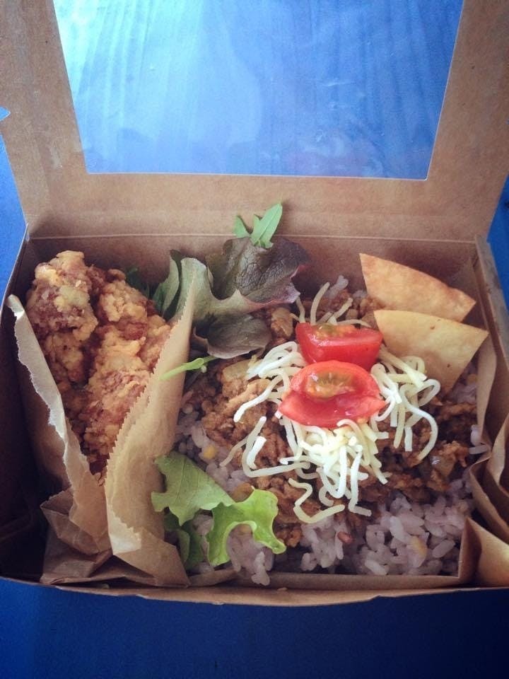 出店をはじめた頃は、木箱にハーブチキンを山盛り入れて!ハーブチキンだけで出店していたのですが、ありがたいことにすぐに完売となることが多く、もっと喜んでもらいたいと、ハーブチキンを揚げている間に、ランチボックスを作るようになりました。