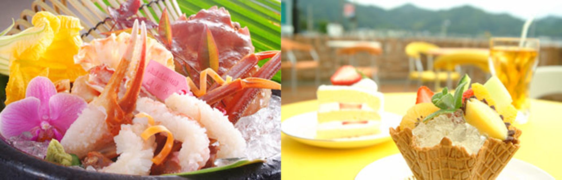 既に何度もキャンピングカーを受け入れている、アットホームな雰囲気が素敵な旅館。カニのまち・香住ならではの料理が自慢です。また、併設するカフェで提供されるお洒落なスイーツも人気の秘密。