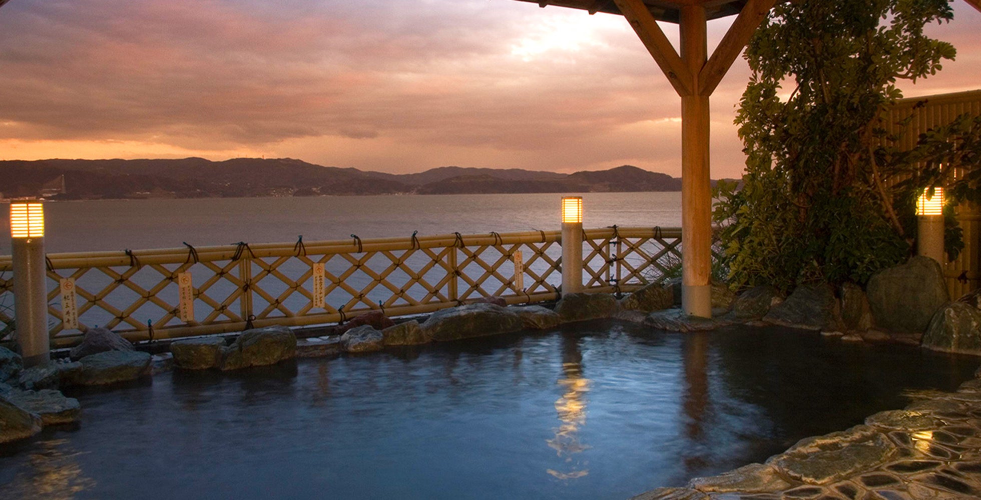 和歌山港に程近い眺望自慢の旅館。ゆったりと長湯が楽しめる温泉露天風呂からは、和歌浦湾の夕景が望めます。また、新鮮な海の幸や紀州和華牛など、 和歌山の「旬の美食」が味わえるのも大きな魅力。