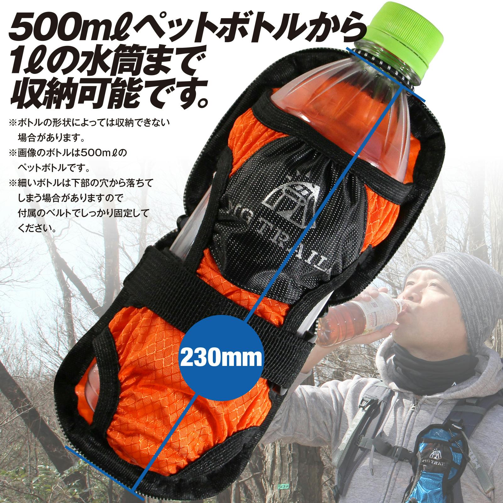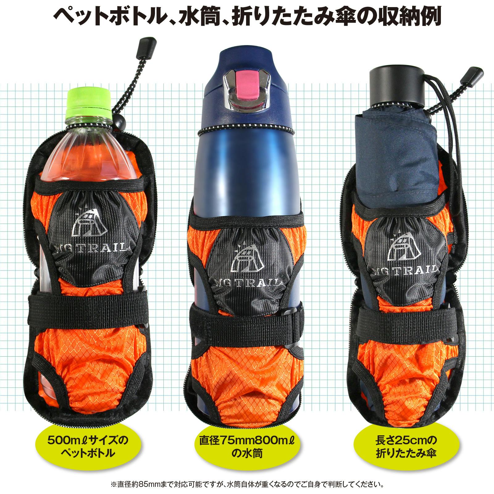リュックやベルトに取り付け自由自在 装着方法を選ばずペットボトルを身に付けられるホルダーです。登山やサイクリング時につい買ってしまうペットボトル。これがあれば両手フリーで気軽に装着できます。スポーツ時の水分補給で必要な保冷水筒や梅雨時期の折り畳み傘の携帯にもとっても便利です。