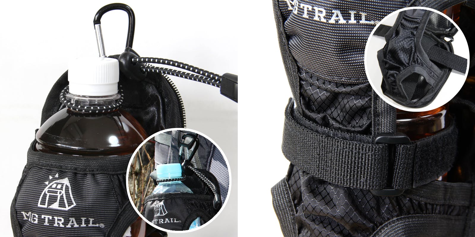 しかし、このポケットペットボトルホルダーを装備していれば気軽に水分補給を行えます。リュックを降ろすひと手間から解放されますよ。