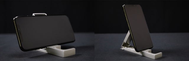 カバー部分を開くと縦にも横にもスマホを立てられるスマホスタンドに。