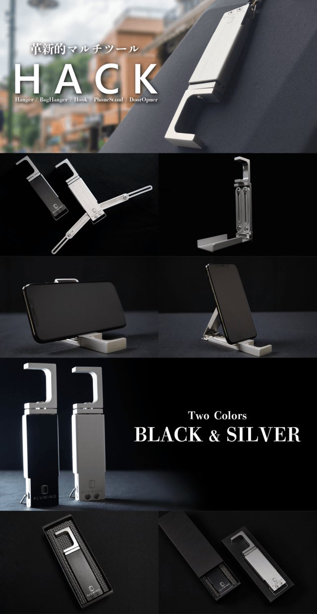 HACKの由来は、この商品の主な機能のHanger(ハンガー)Hook(フック)と生活を効率よく安楽に過ごすための手法や技術の事をさすLife HackからHACKという名前にしました。